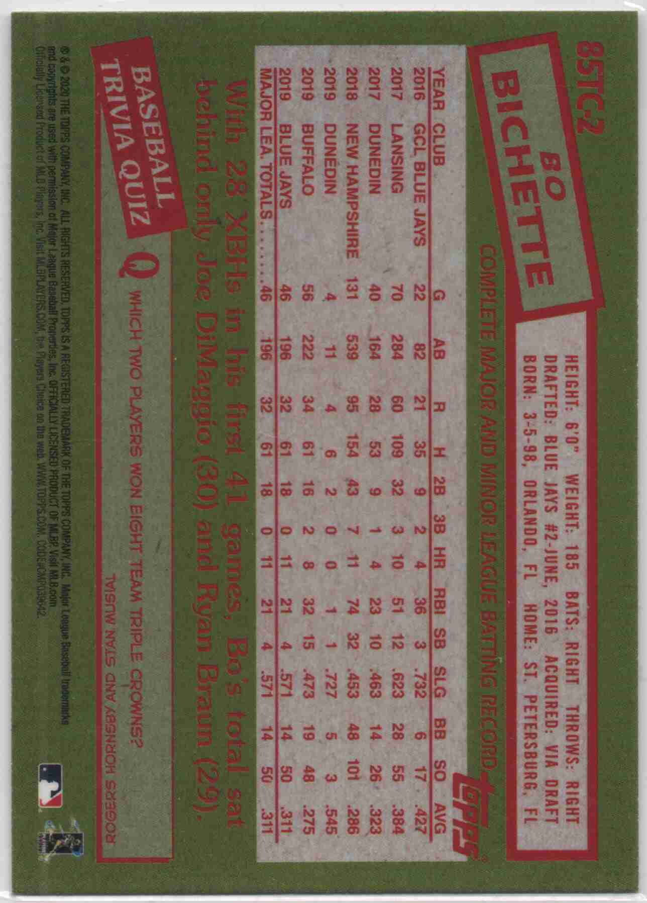 Bo Bichette 2020 Topps Chrome 35th Anniversary REF Rookie