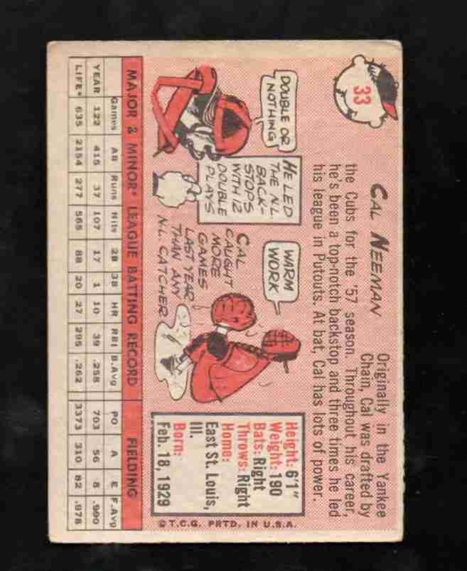 1958 Topps # 33 CAL NEEMAN Chicago Cubs VG/EX