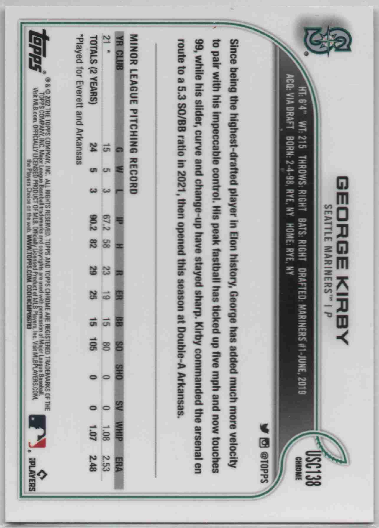 George Kirby 2022 Topps Chrome Purple Refractor Rookie