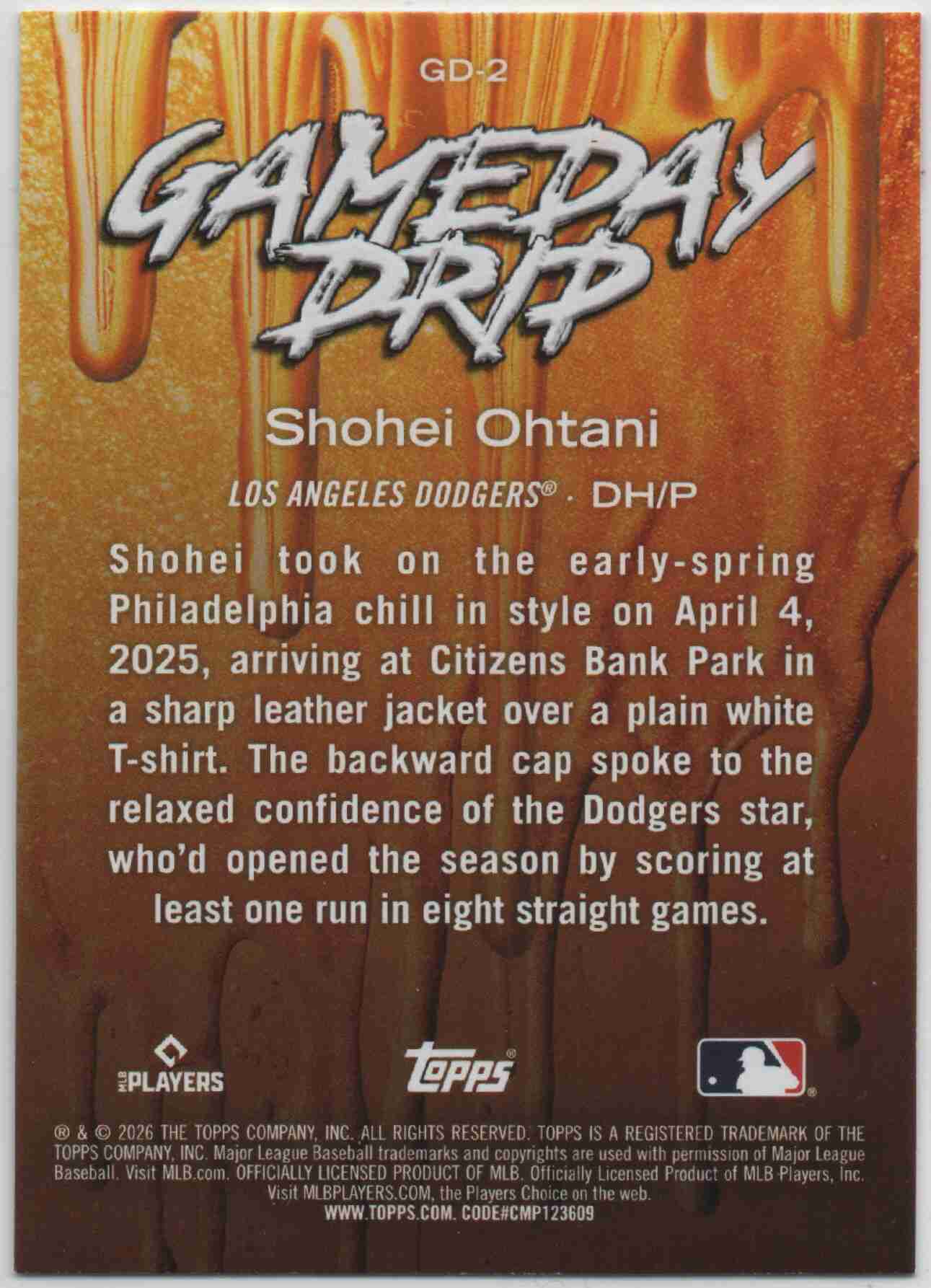 Shohei Ohtani 2026 Topps Series 1 Gameday Drip SP Insert