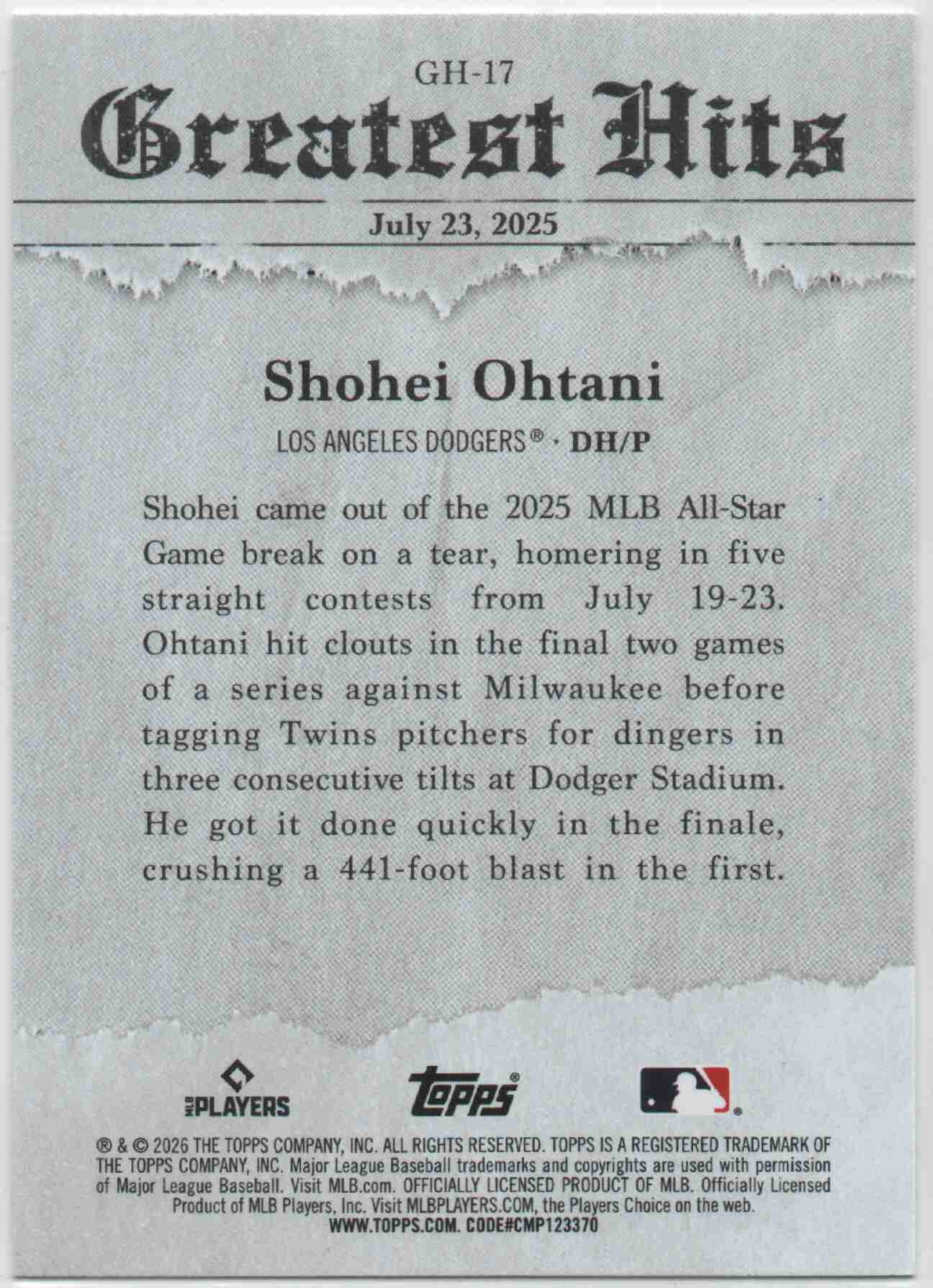 Shohei Ohtani 2026 Topps Series 1 Greatest Hits Insert