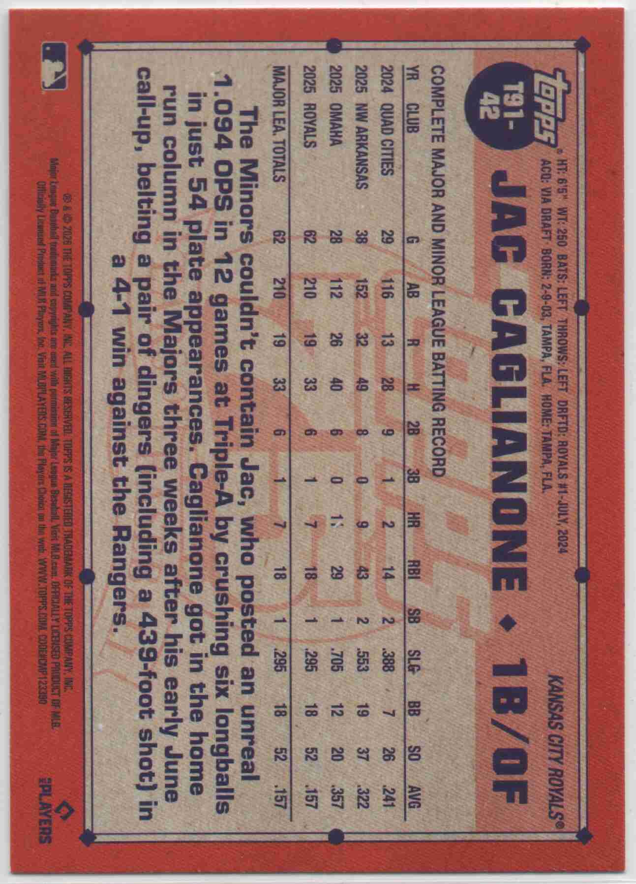 Jac Caglianone 2026 Topps Series 1 35th Anniversary Rookie