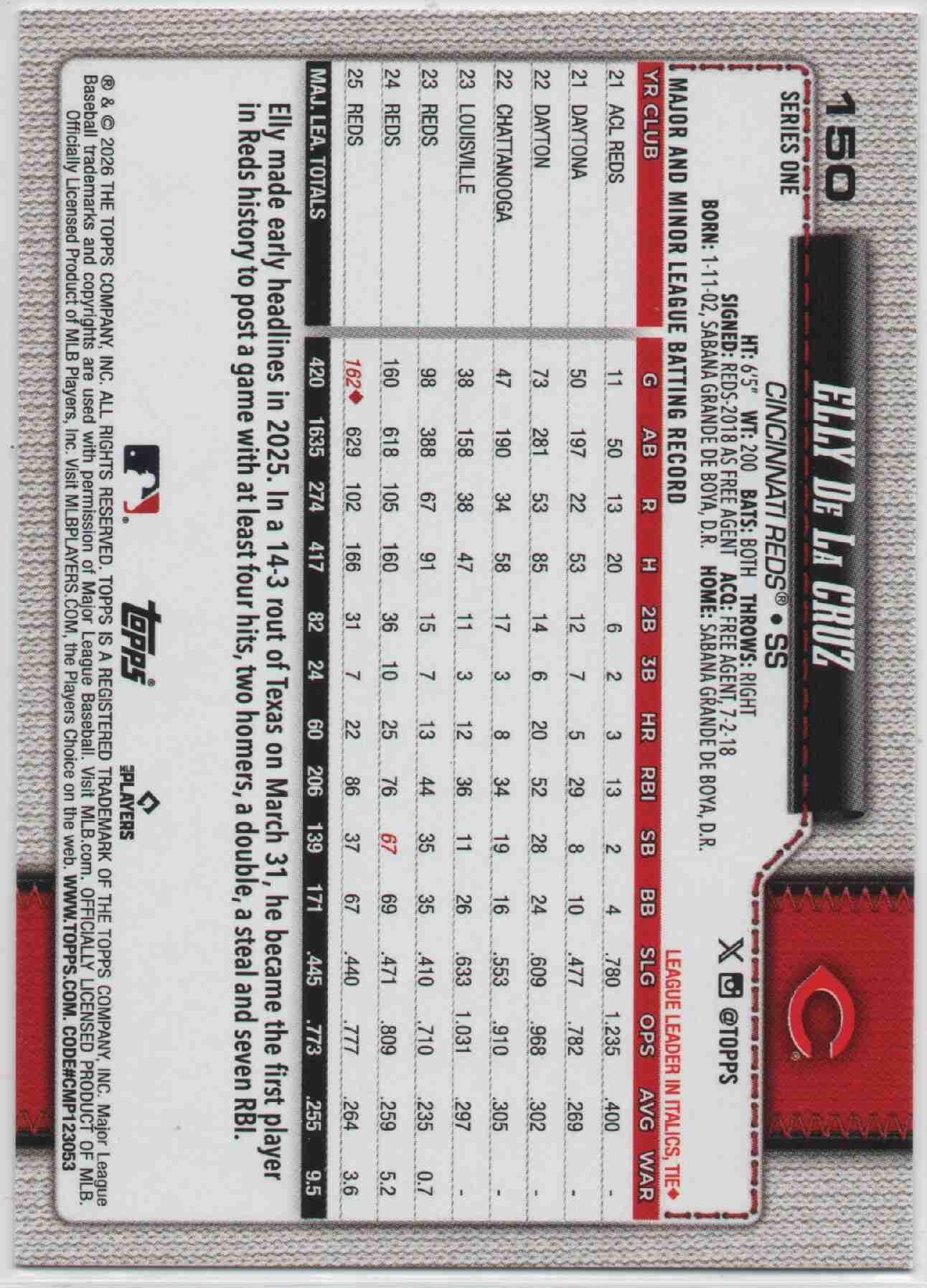 Elly De La Cruz 2026 Topps Series 1 #150 Diamante Parallel