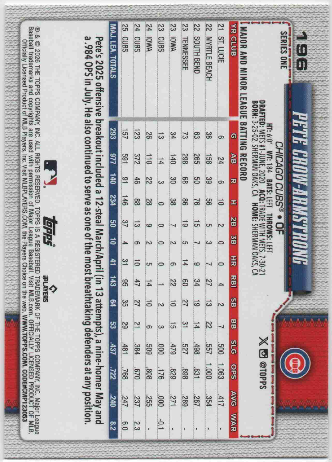 Pete Crow-Armstrong 2026 Topps Series 1 Diamante Parallel