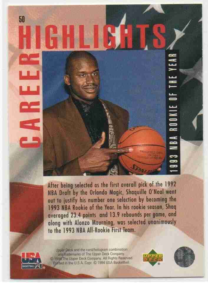 Michael Jordan Shaquille O'Neal 1994 Upper Deck USA #50 '93 ROY