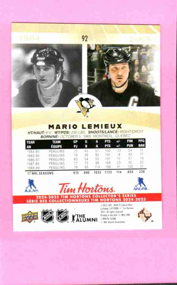Mario Lemieux #92 2024 Upper Deck Tim Horton's Retrospectiv