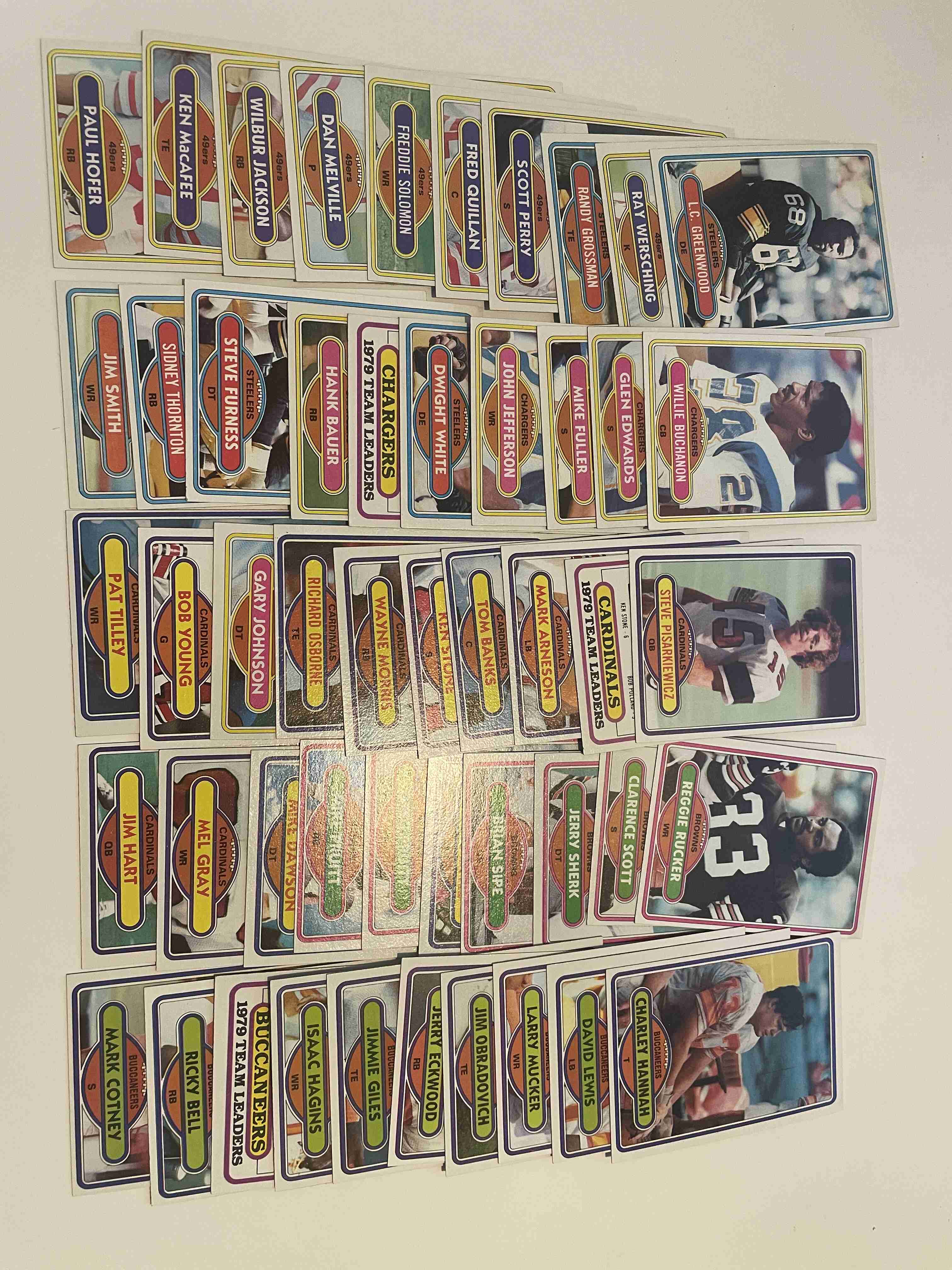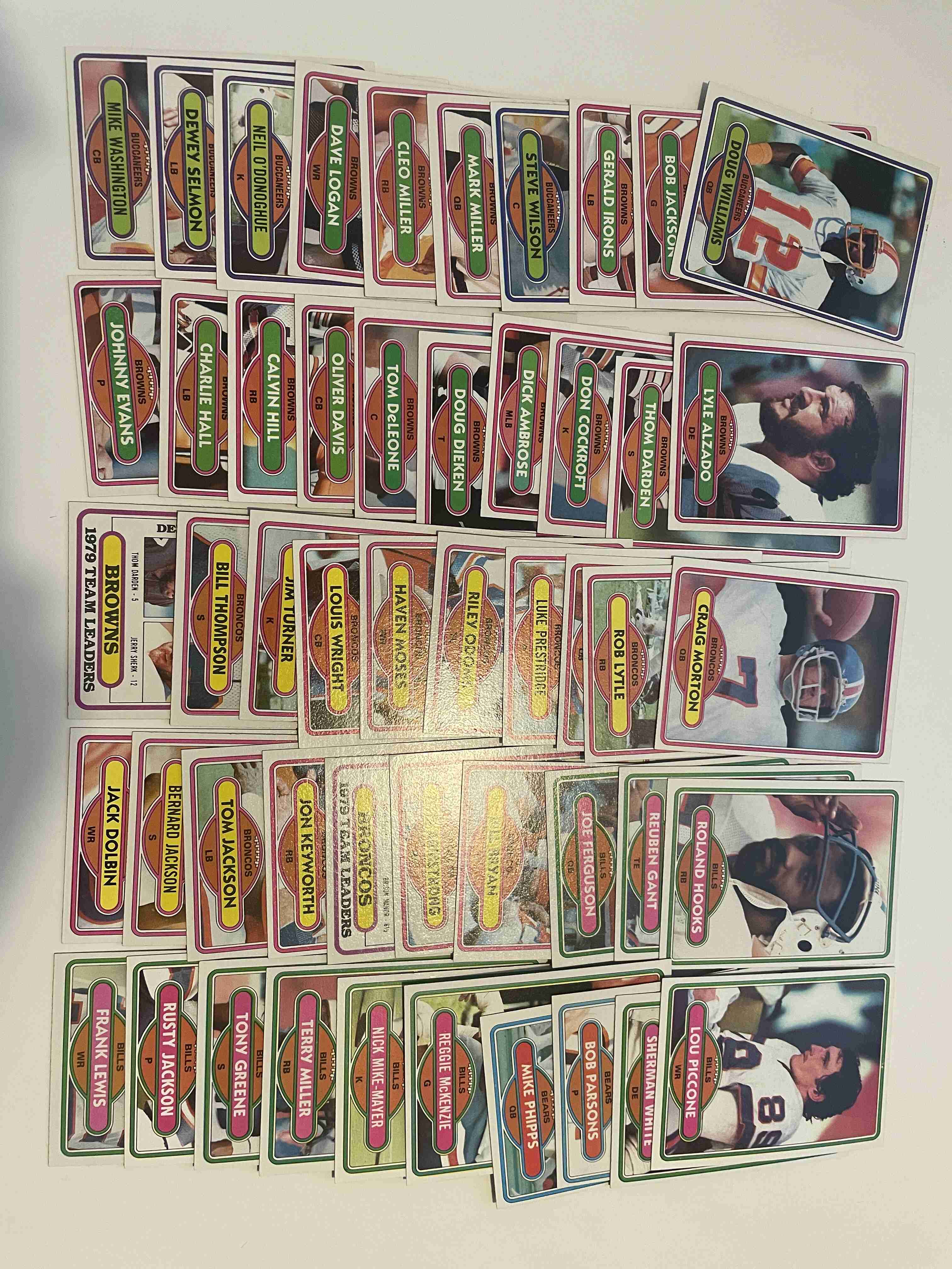 (100 approx) 1980 Football cards. See pics for exact cards and condition. Little or no Dups and higher lot grade of cards.