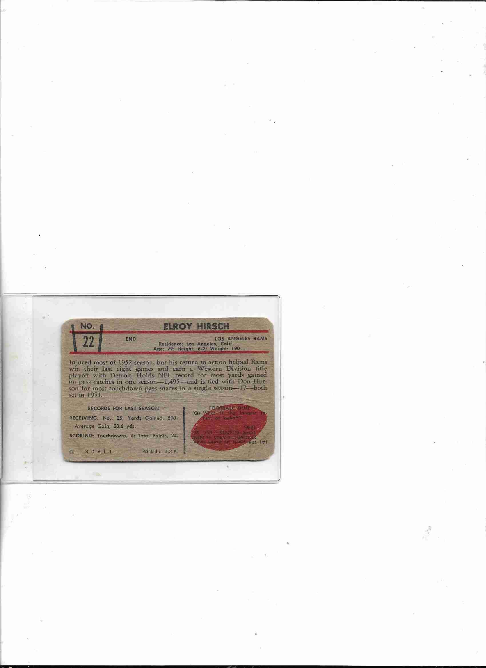 1953 Bowman #22 ~ Elroy "Crazy Legs" Hirsch LA Rams HOF