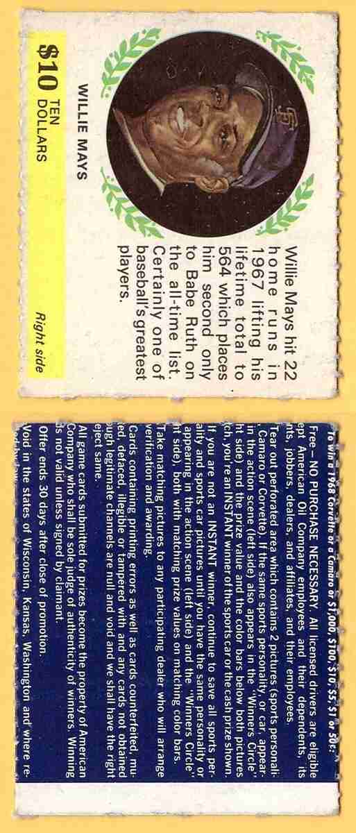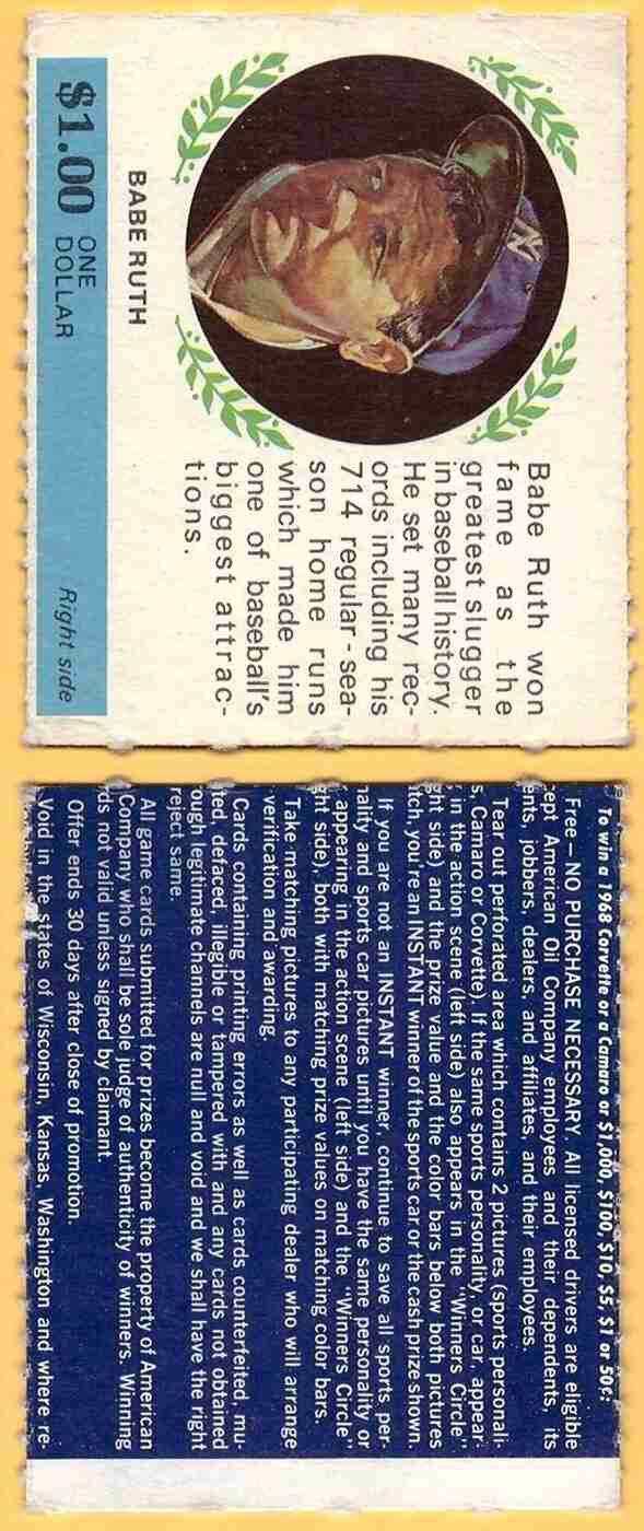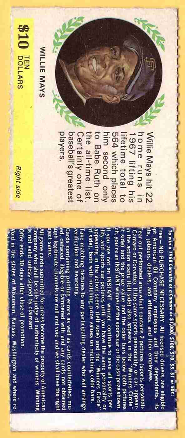 1968 Amoco Winnrs Cir Game Pieces– Ruth/Mays/Sayers [SL282]