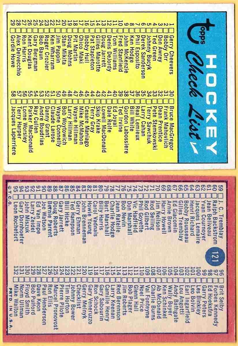 1968-69 Topps #121 Checklist Card <====> [SL295] Super CLEAN!!! refer to pictures for condition/grade of card =================================================