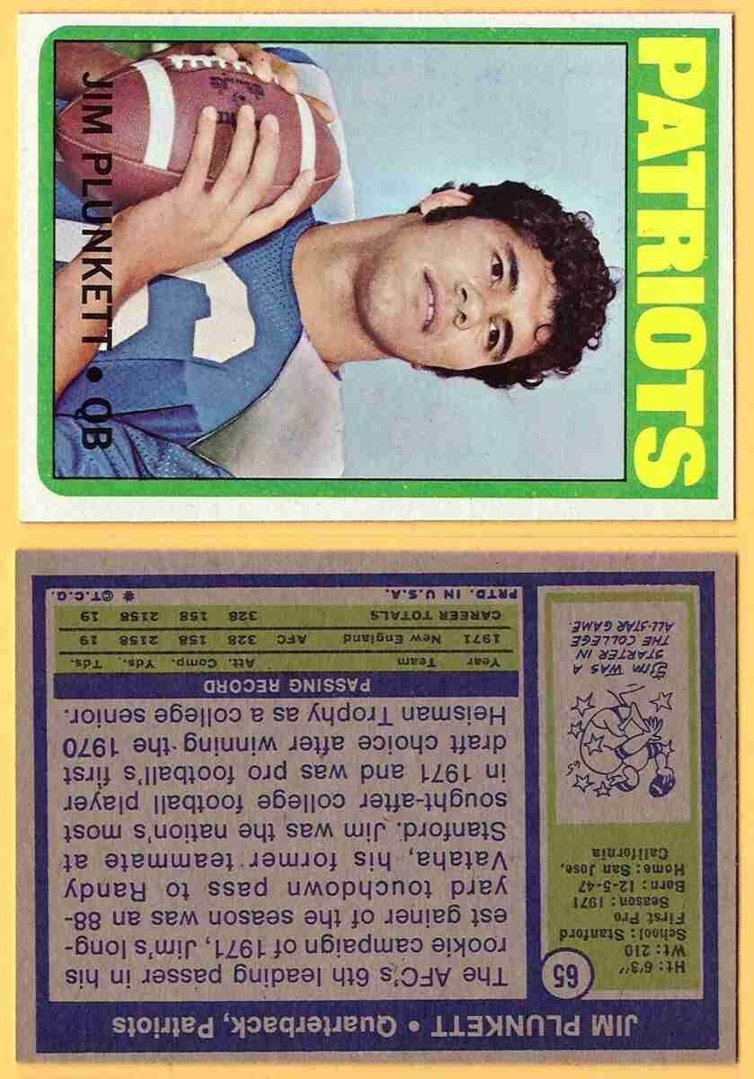 1972 Topps #65 Jim Plunkett RC <====> [SL299] refer to pictures for condition/grade of card =================================================