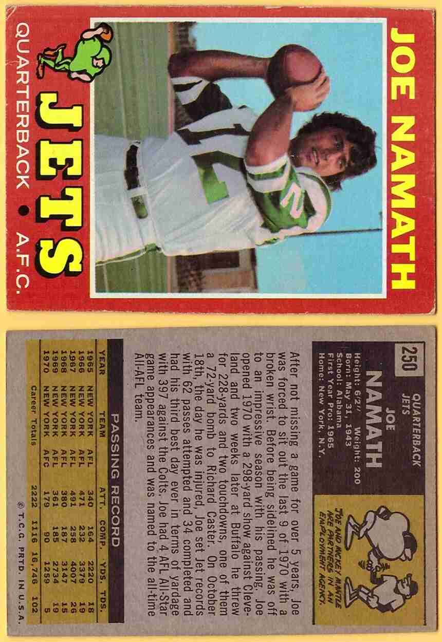 1971 Topps #250 Joe Namath <====> [SL300] refer to pictures for condition/grade of card =================================================