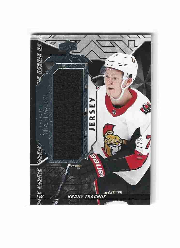 18-19 UD Black Brady Tkachuk /299 Jersey Rookie Trademarks