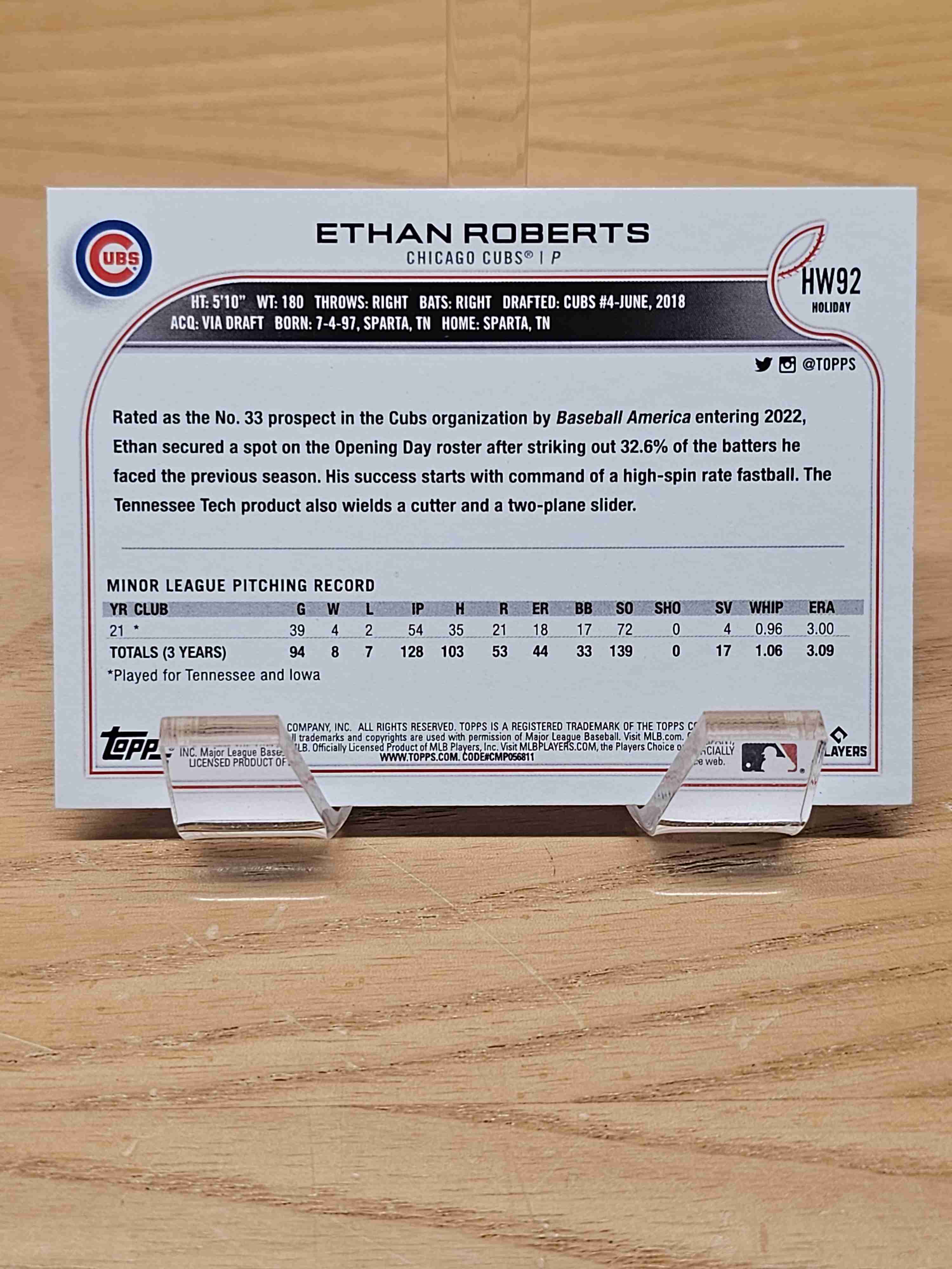 2022 Topps Holiday Rookie RC Ethan Roberts Cubs #HW92