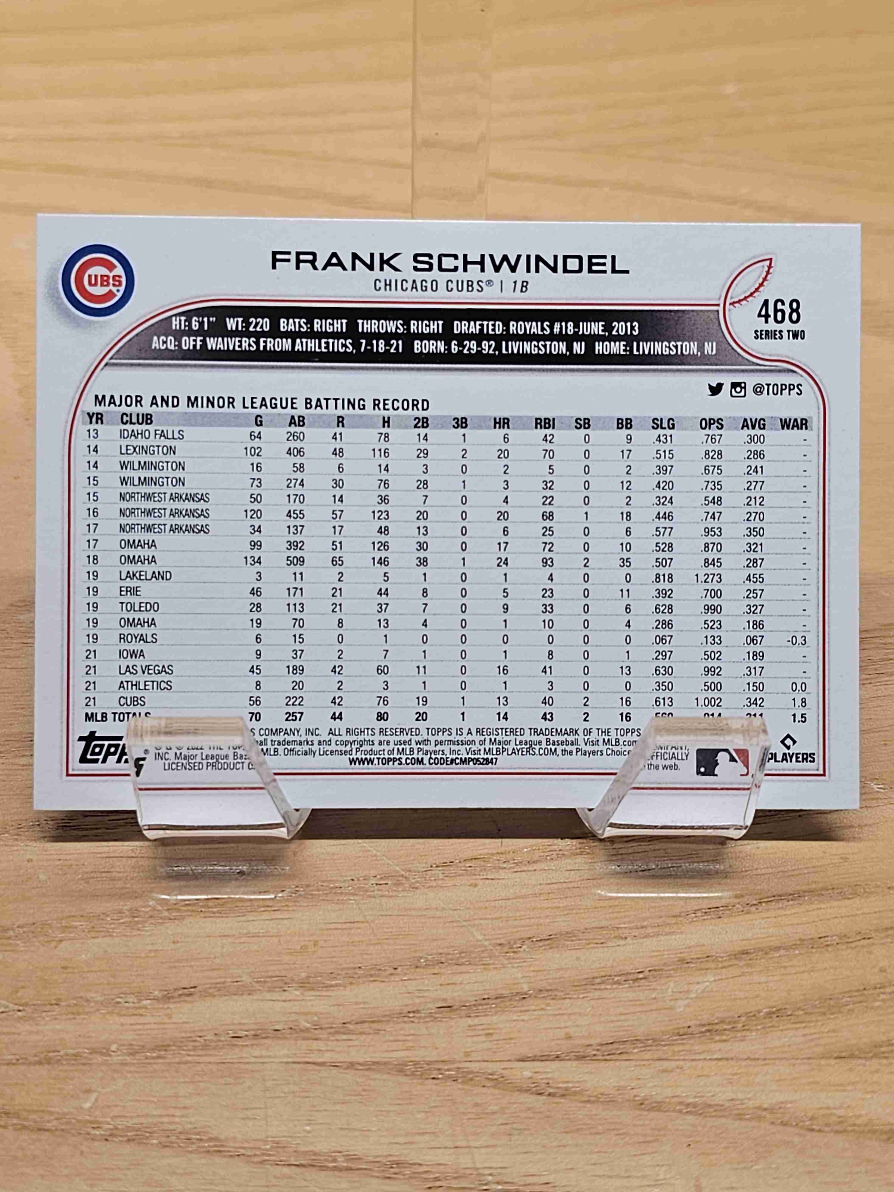 2022 Topps Series Two Baseball Frank Schwindel Chicago Cubs Card #468