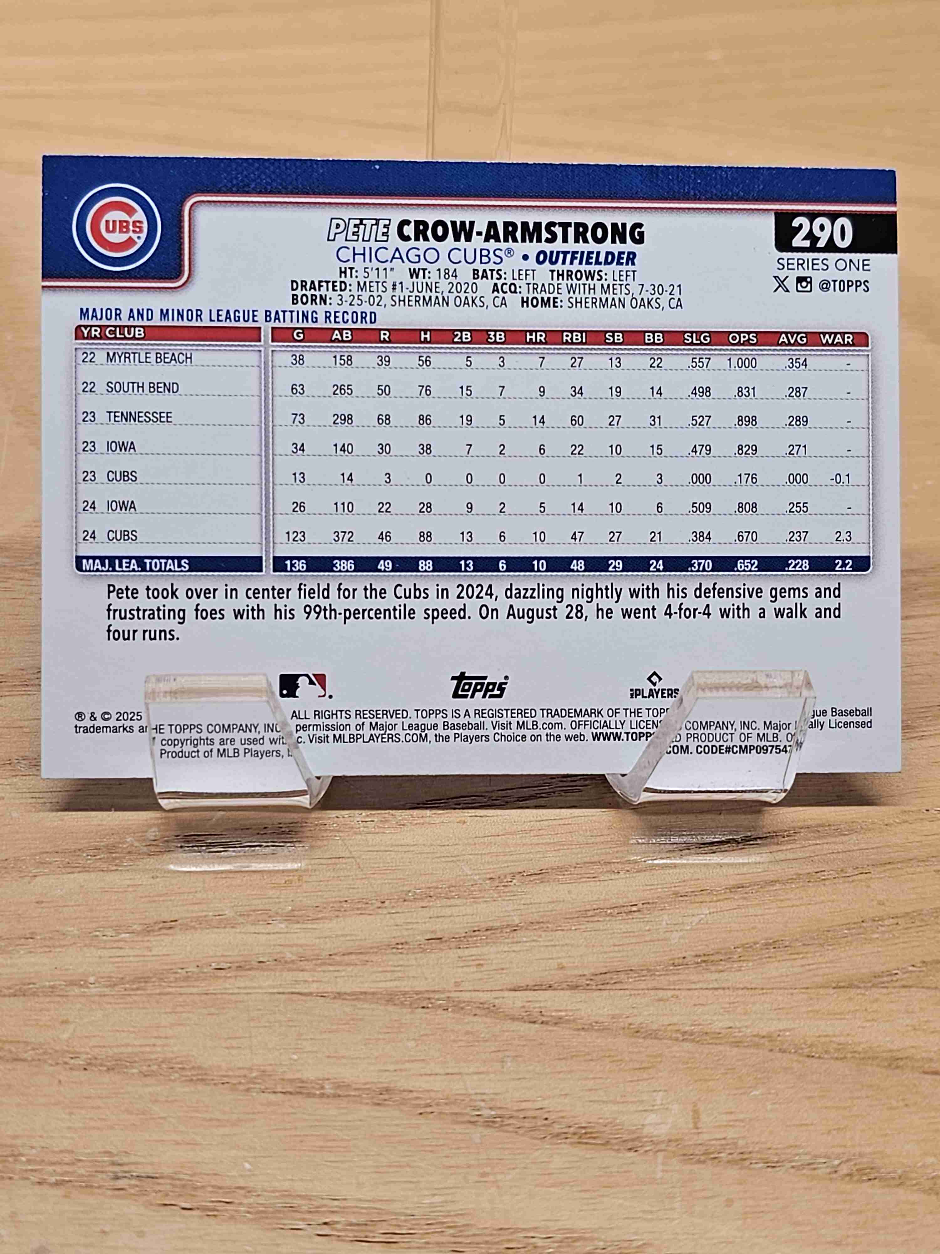 2025 Topps Series One Baseball Future Stars Pete Crow-Armstrong Chicago Cubs Card #290