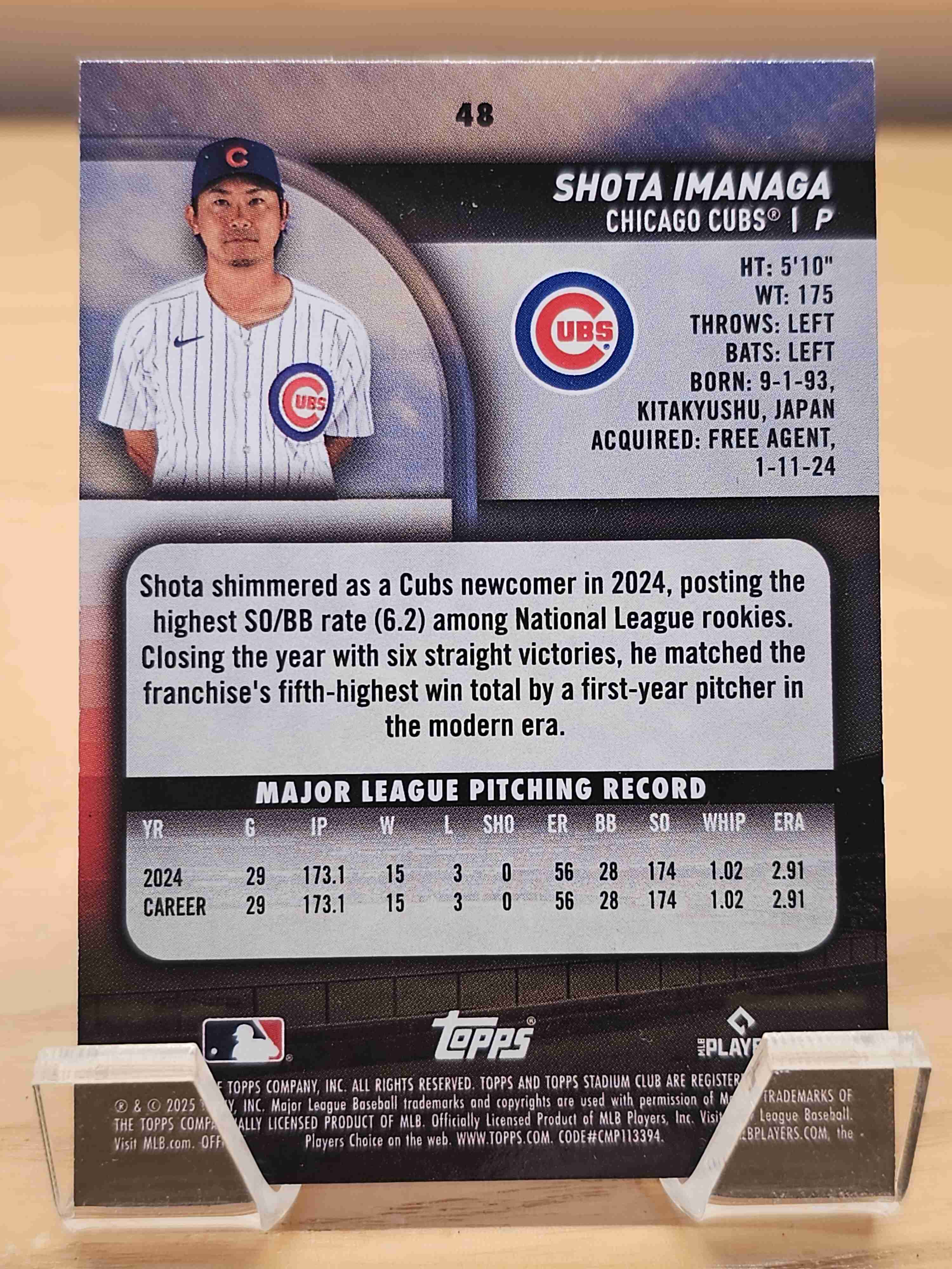 2025 Topps Stadium Club Baseball Shota Imanaga Chicago Cubs Card #48