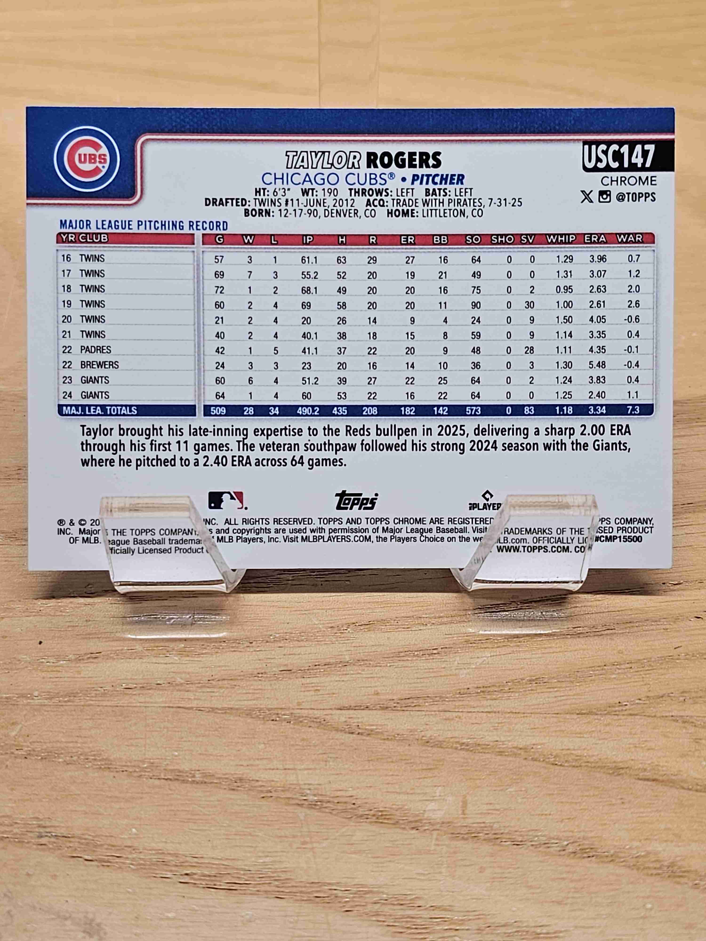 2025 Topps Chrome Update Series Taylor Rogers Cubs #USC147