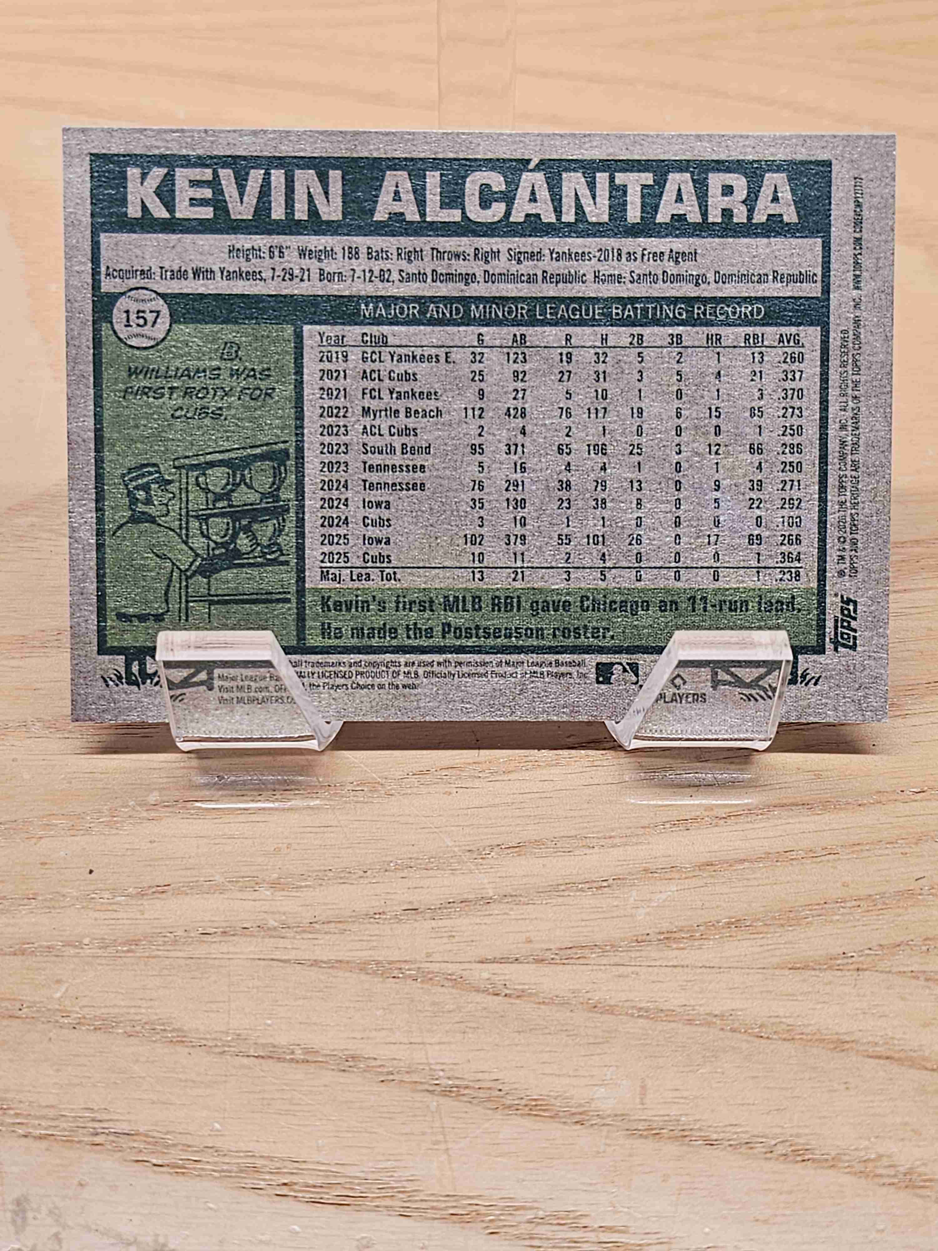 2026 Topps Heritage Baseball Kevin Alcantara Chicago Cubs Card #157