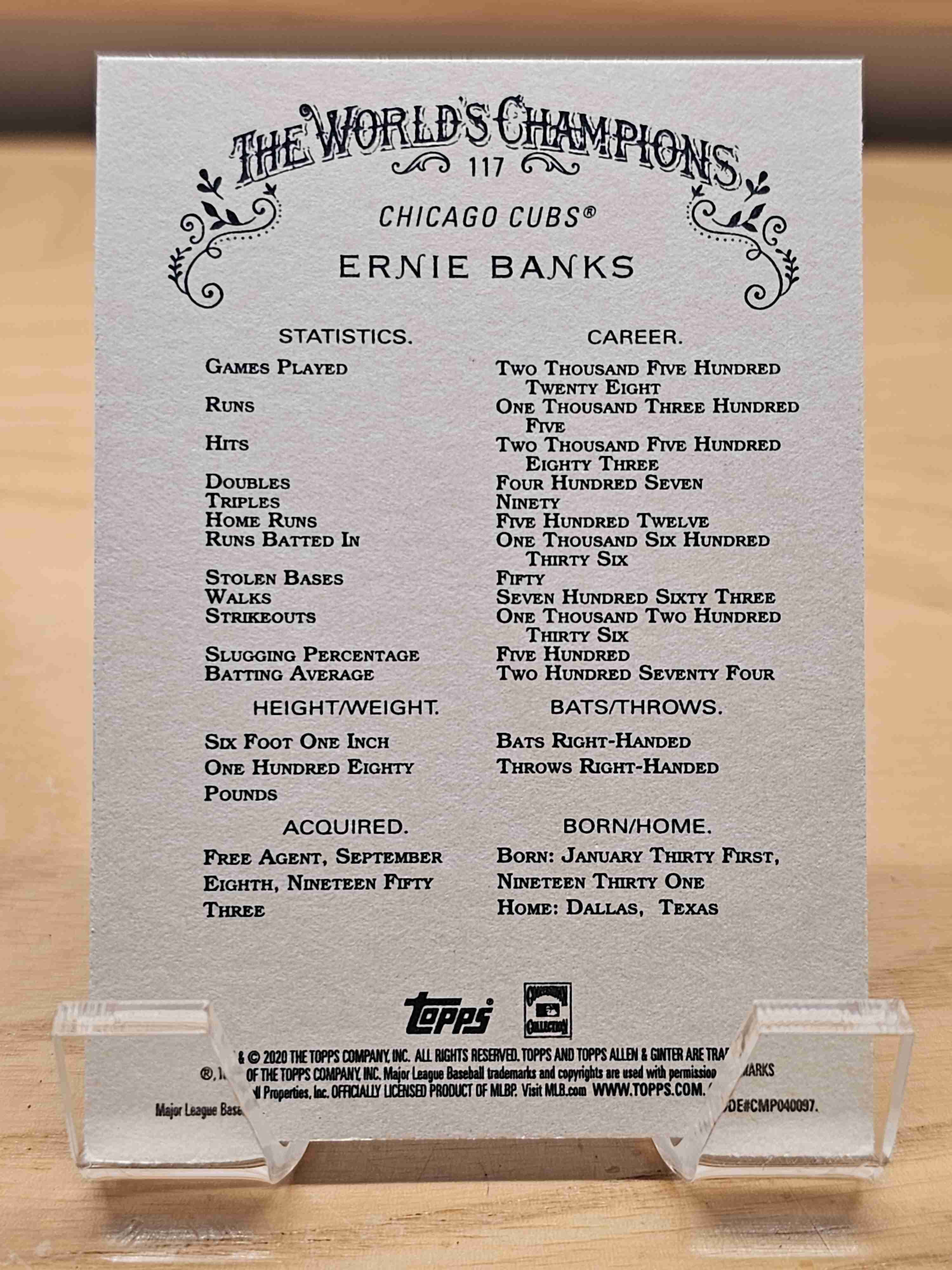 2020 Topps Allen & Ginter Ernie Banks Chicago Cubs #117