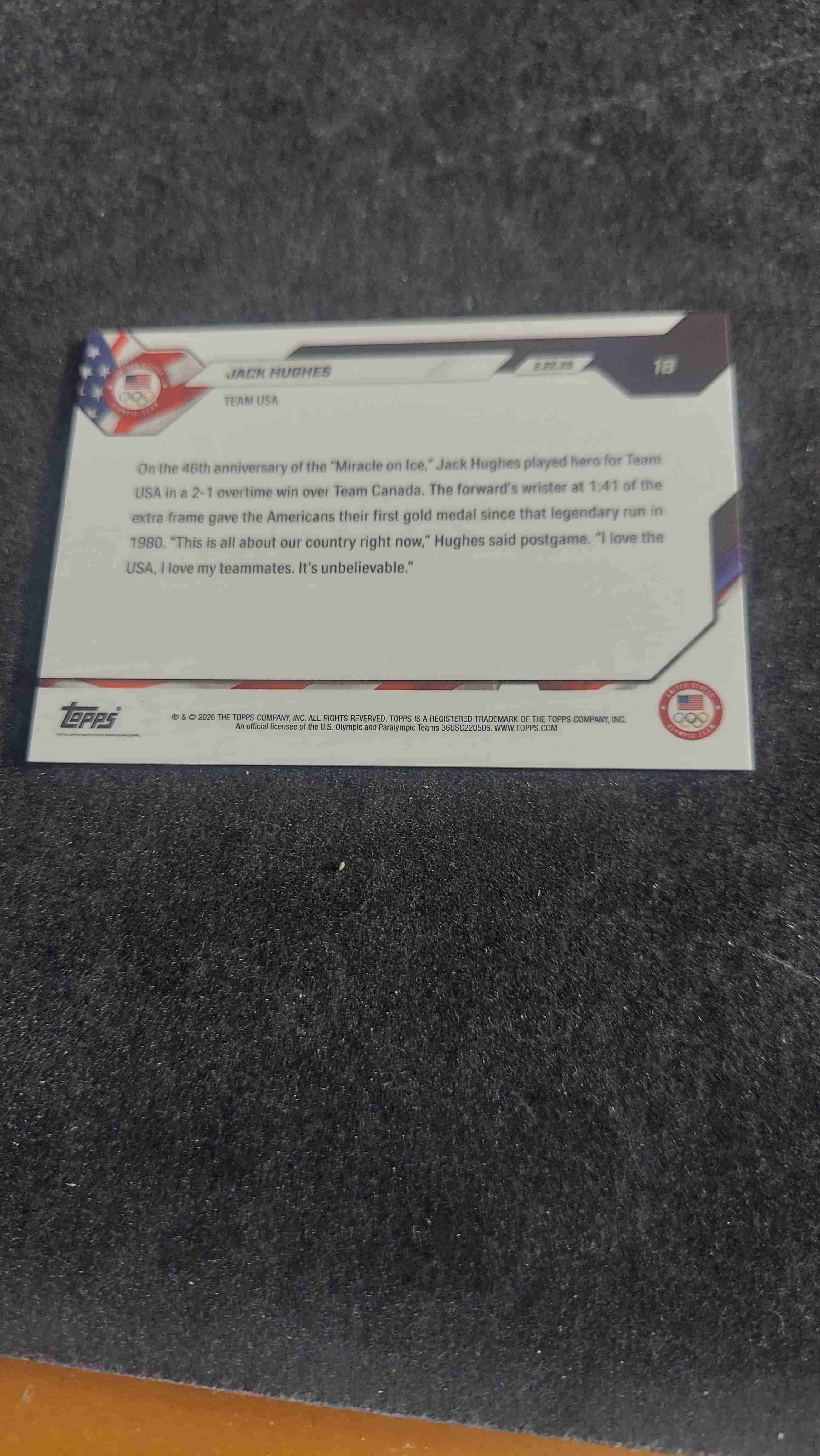 Jack Hughes Topps now olympic card #18