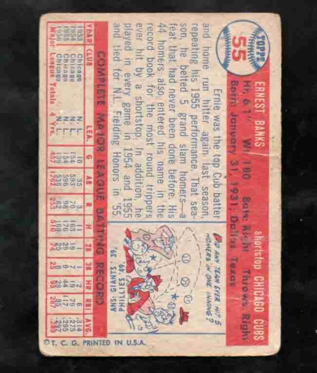 1957 Topps # 55 HOFer ERNIE BANKS Chicago Cubs