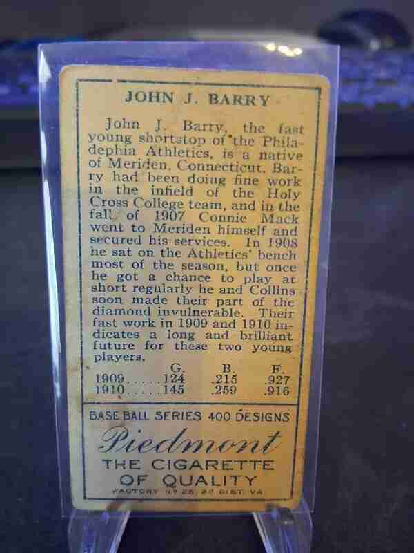 Jack Barry 1911 T205 Gold Border Piedmont Back. Presents nicely, listing as Good-Very Good. Shipped in a bubble mailer with tracking.