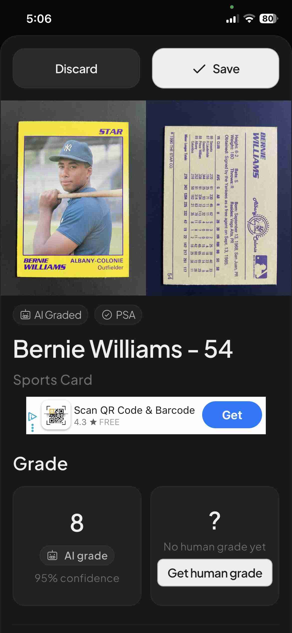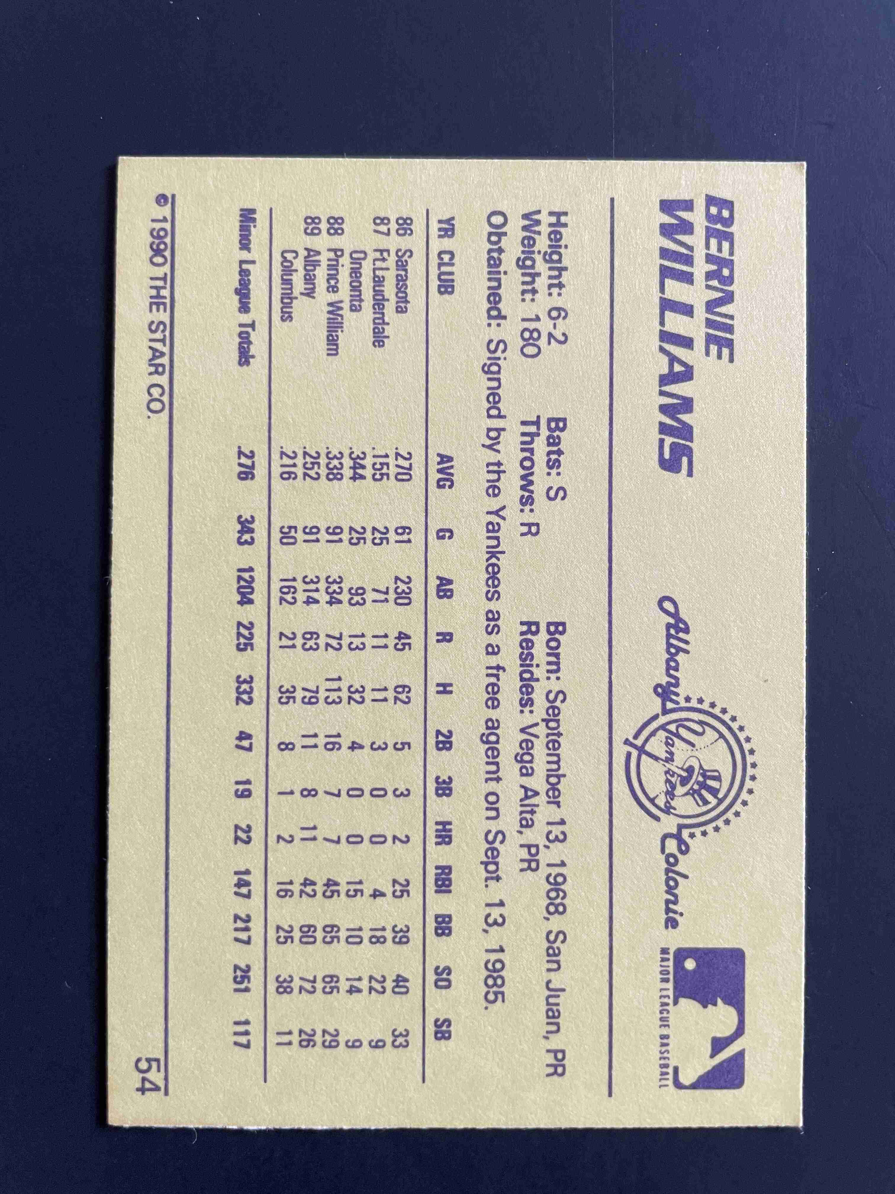 1990 Bernie Williams Rookie Prospect #54 - Grade: 8 (AI)