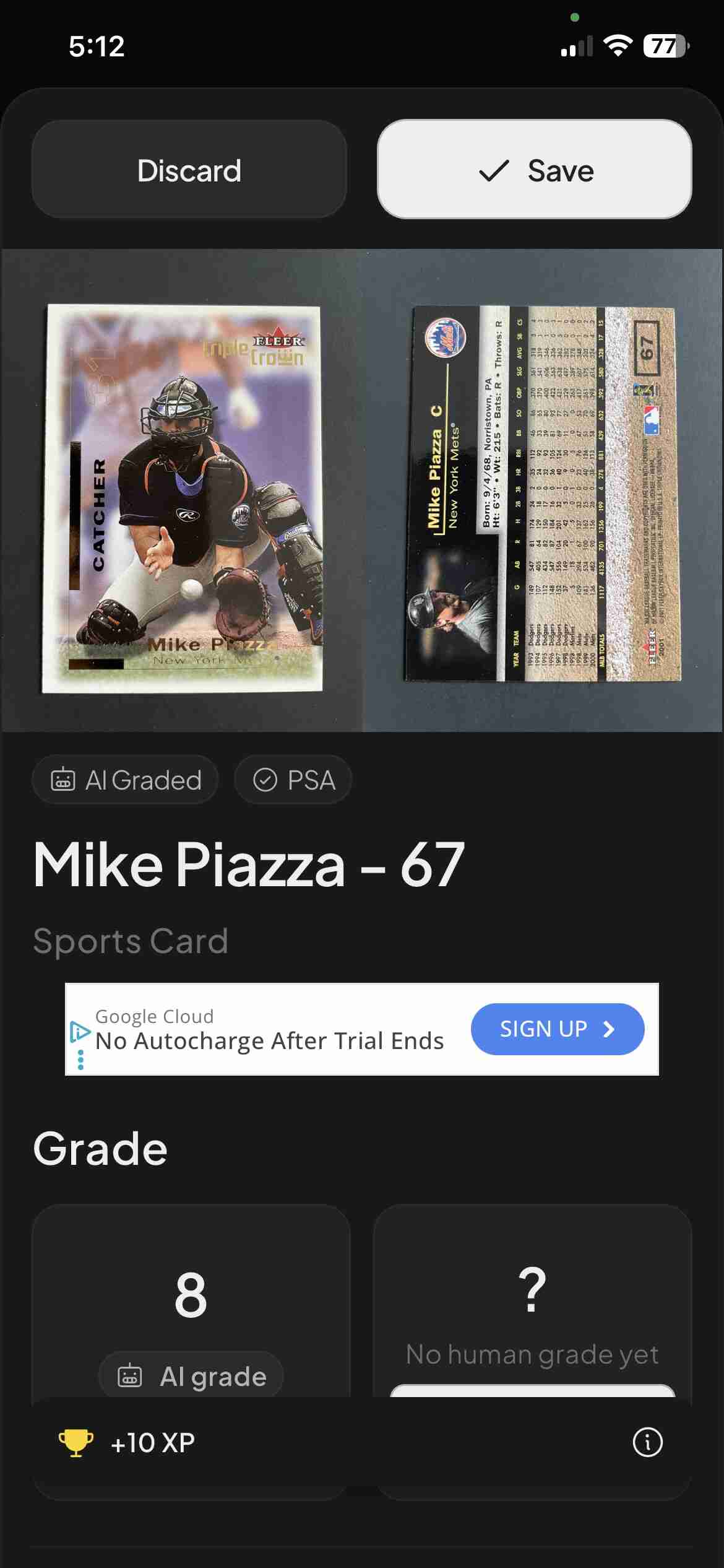 2001 Fleer Triple Crown Mike Piazza HOF #67 - Grade: 8 (AI)
