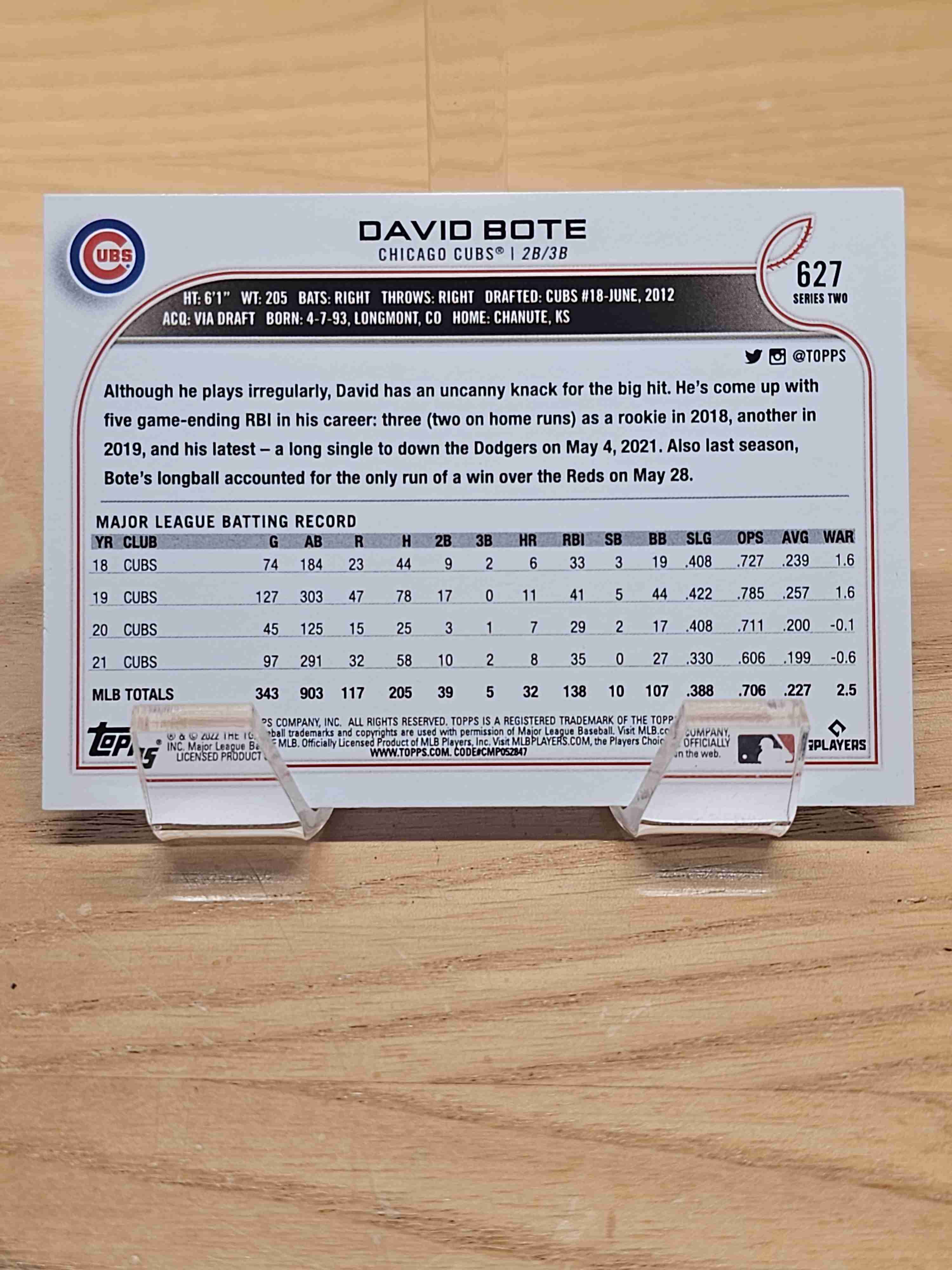 2022 Topps Series Two Baseball David Bote Chicago Cubs Card #627