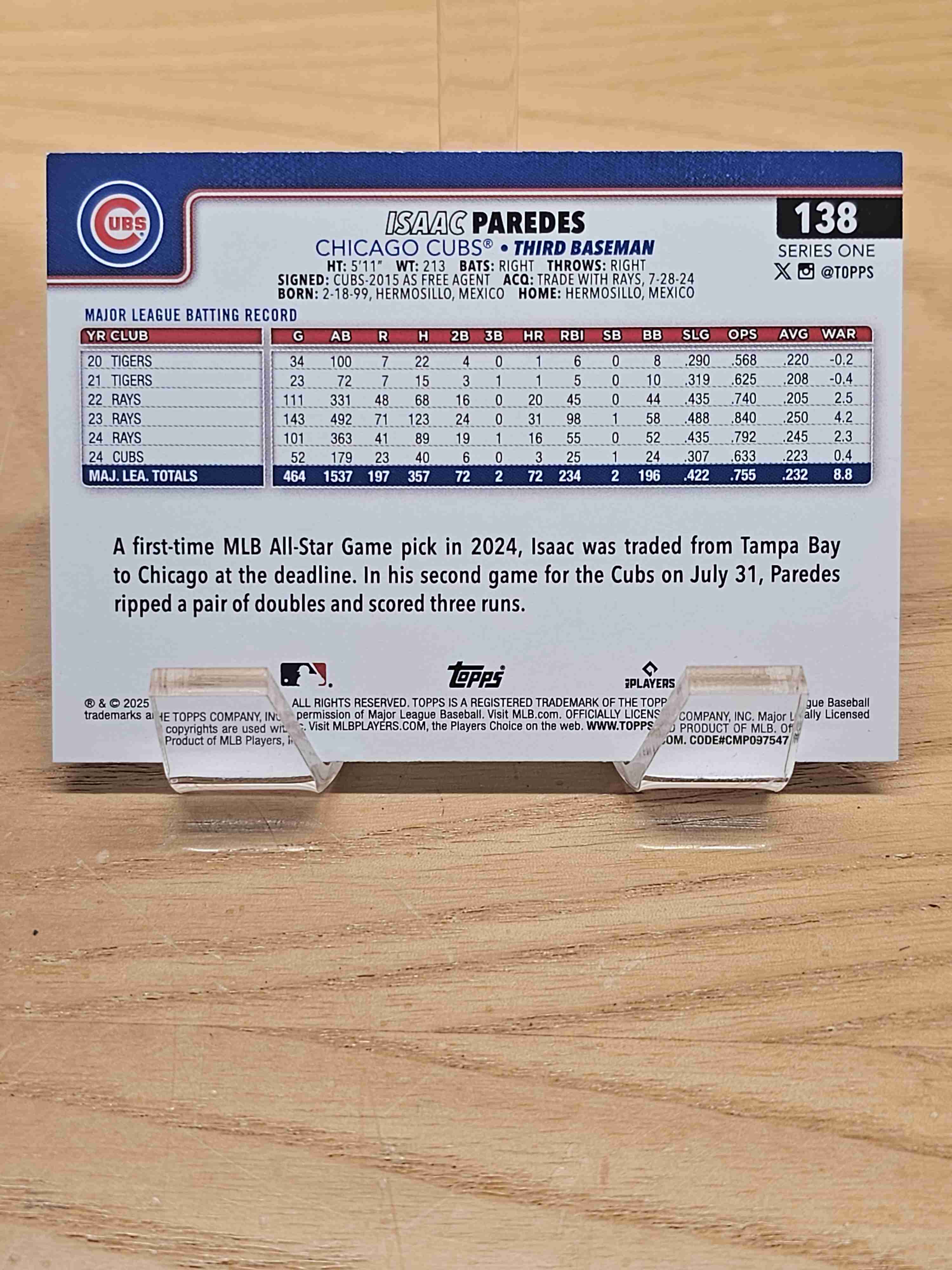 2025 Topps Series One Baseball Isaac Paredes Chicago Cubs Card #138