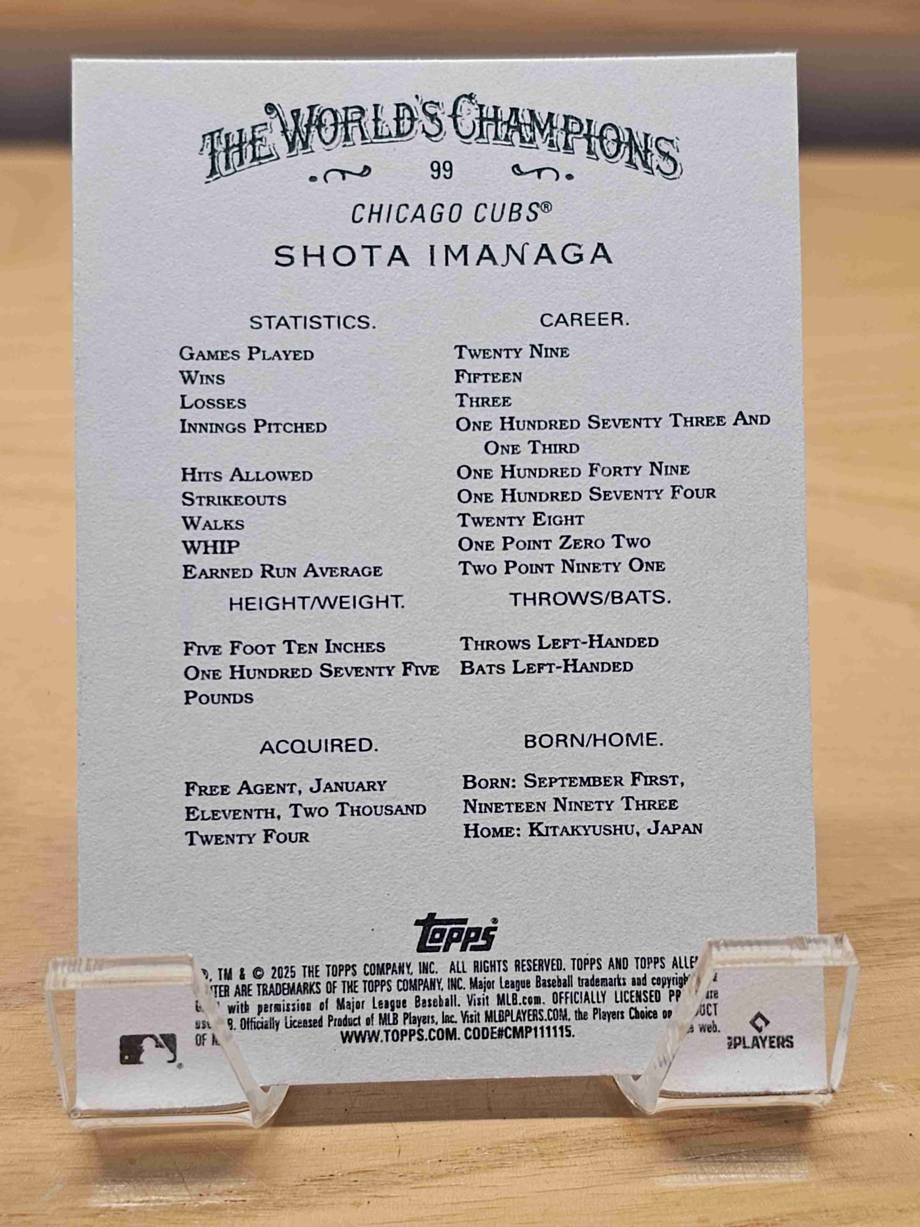 2025 Topps Allen & Ginter Baseball Shota Imanaga Chicago Cubs Card #99
