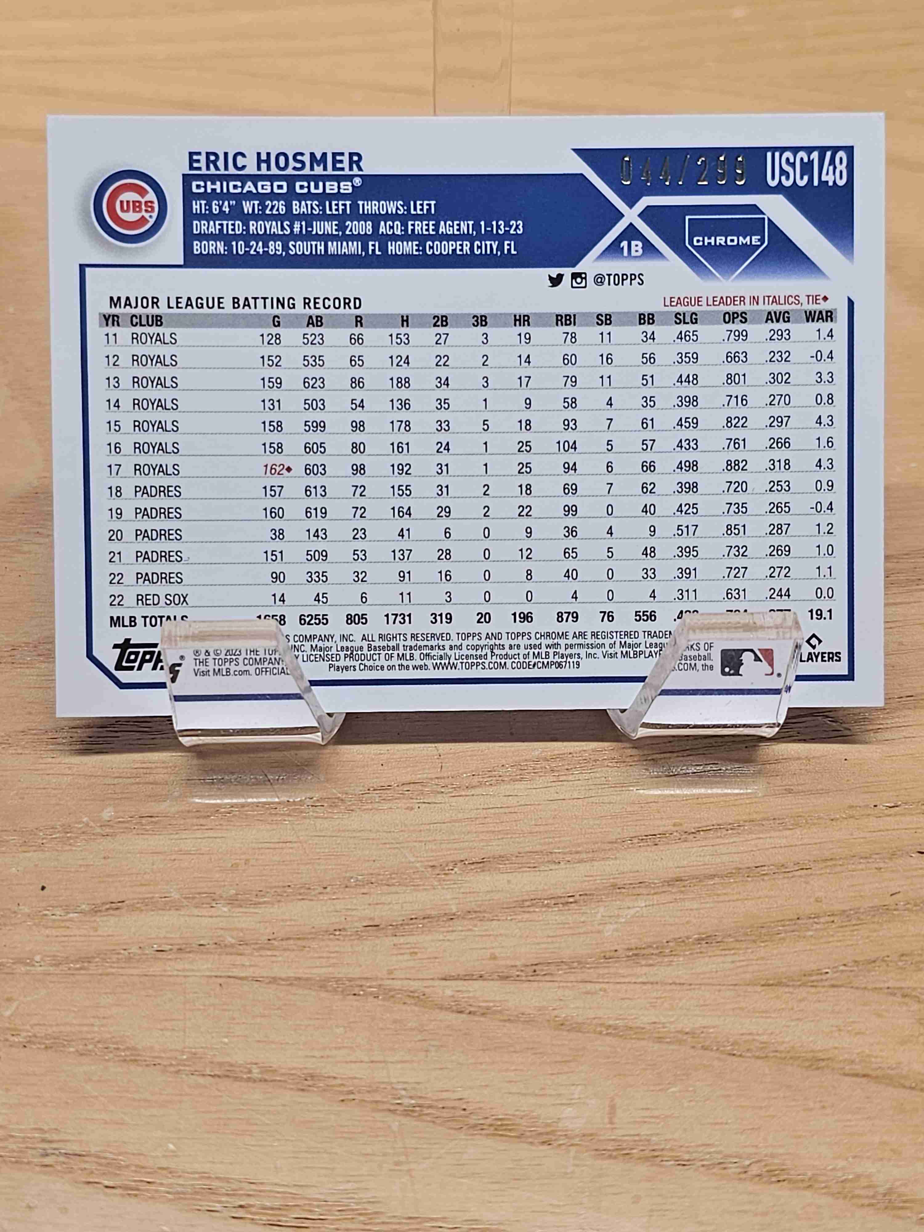 2023 Topps Chrome Update Series Baseball Purple Lava Lamp /299 Eric Hosmer Chicago Cubs Card #USC148