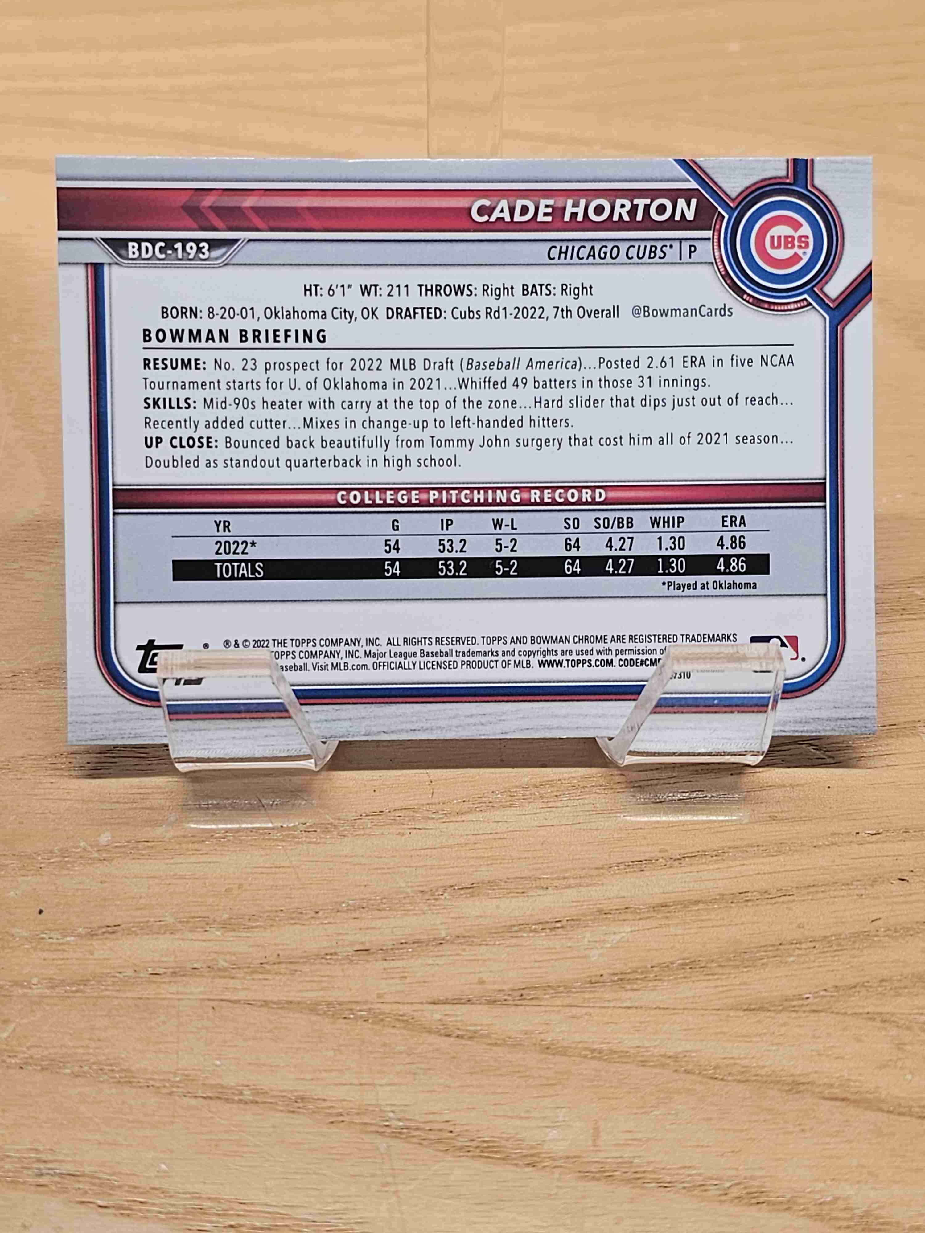 2022 1st Bowman Chrome Draft Cade Horton Cubs #BDC-193