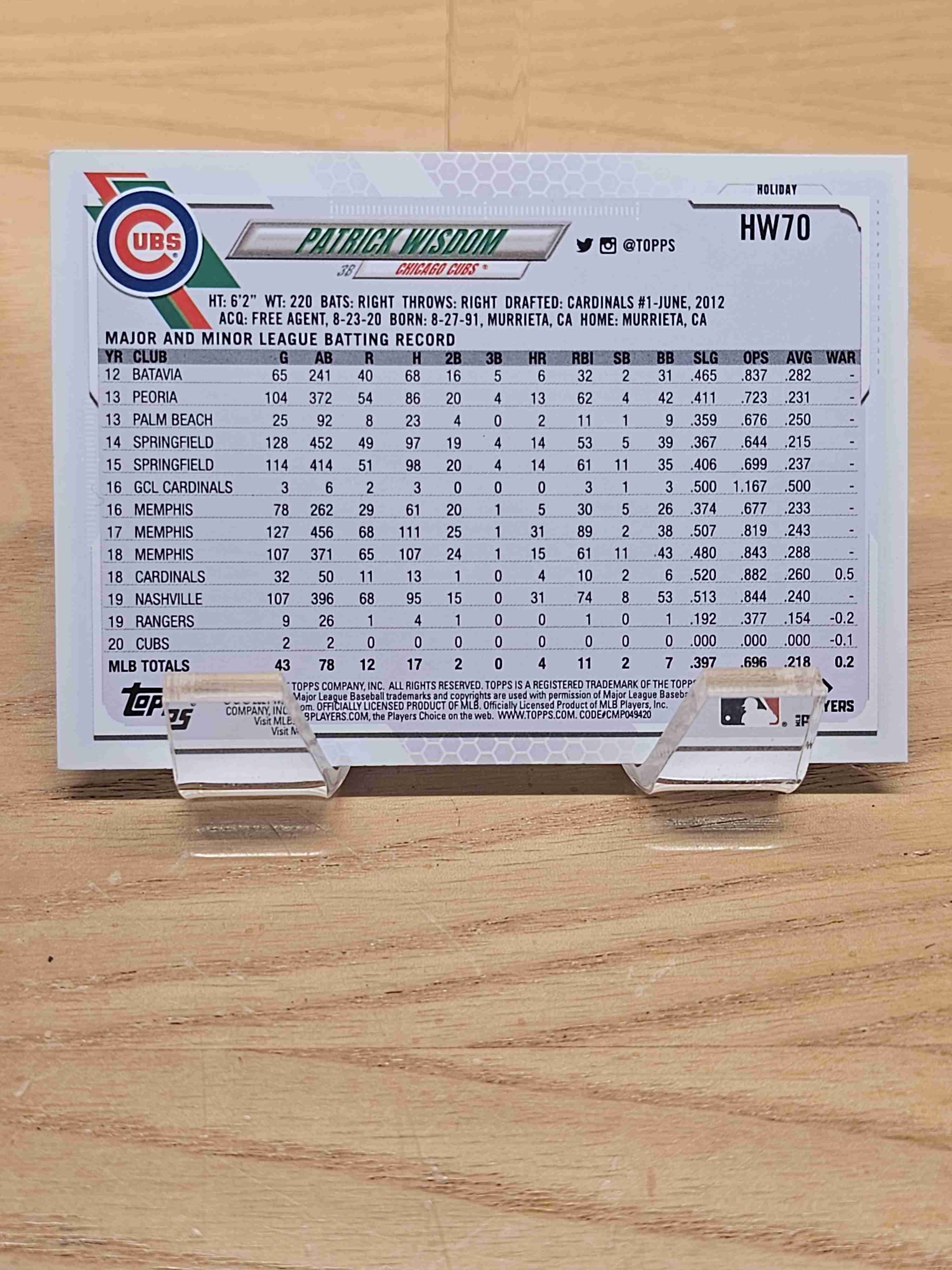 2021 Topps Holiday Baseball Patrick Wisdom Chicago Cubs Card #HW70