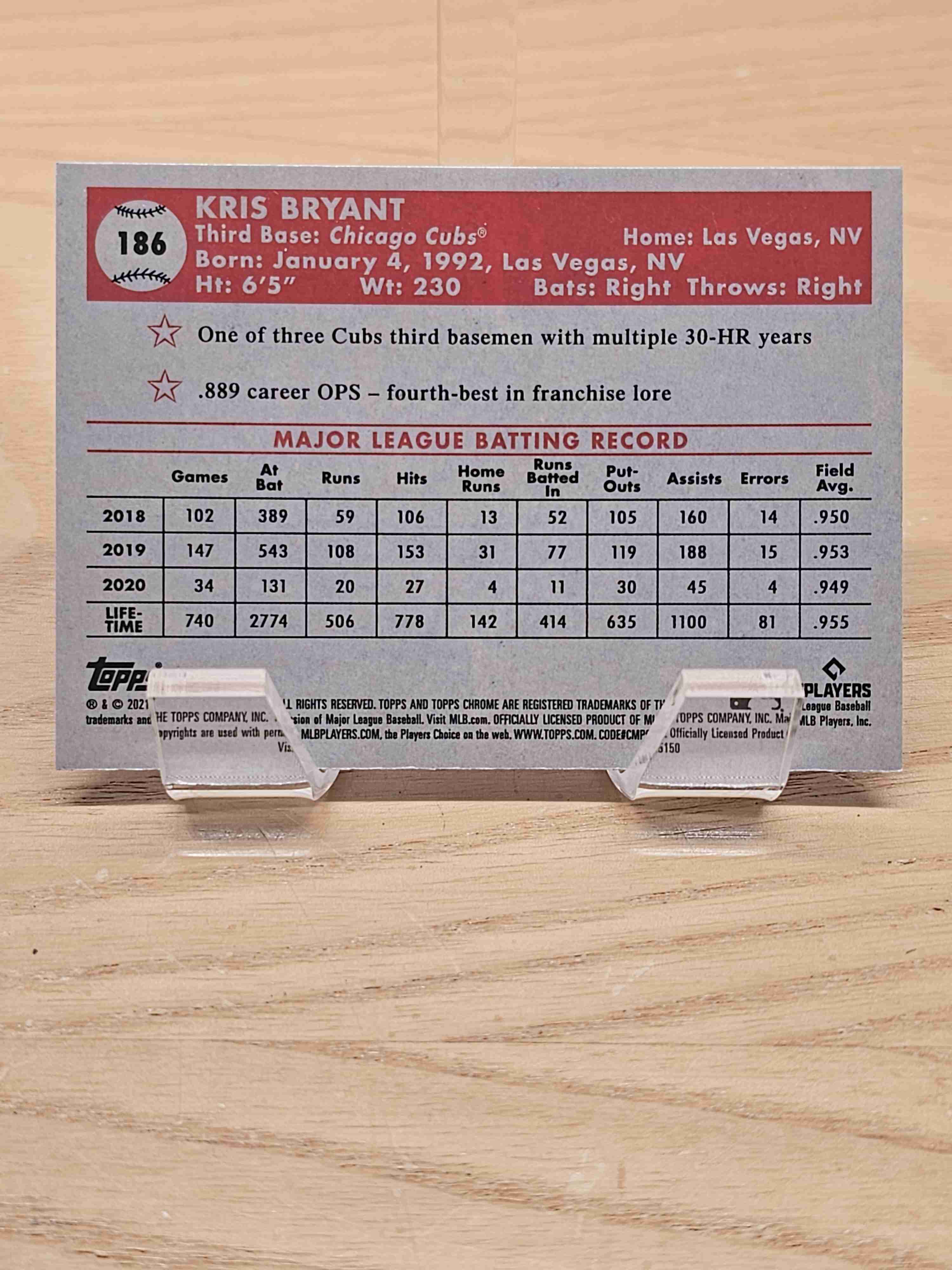 2021 Topps Chrome Platinum Anniversary Baseball Kris Bryant Chicago Cubs Card #186