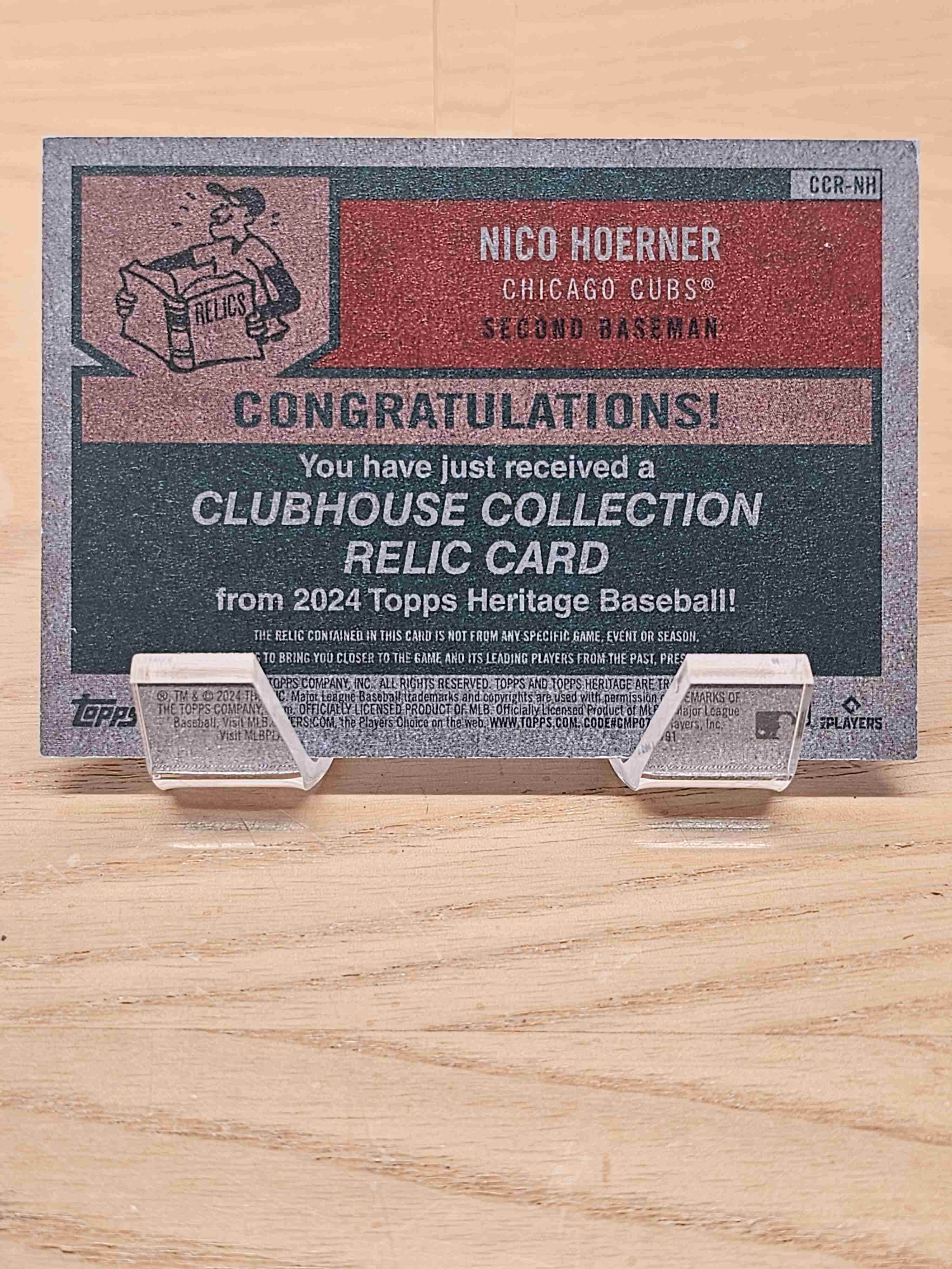 2024 Topps Heritage Baseball Clubhouse Collection Relic Card Nico Hoerner Chicago Cubs Card #CCR-NH