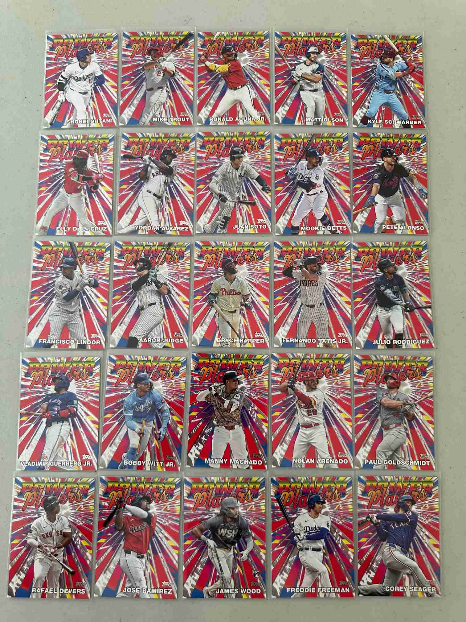 This is last year's (2025) Celebration Power Players Insert set. Has several current veterans and Ohtani and Judge. I have other auctions running now for the other sets from 2025 Celebration Megas. If you ripped too much series 1 last year and want to pick these up to complete your master set, or just like how they look, check my other listings, please! Last pic shows the whole set.