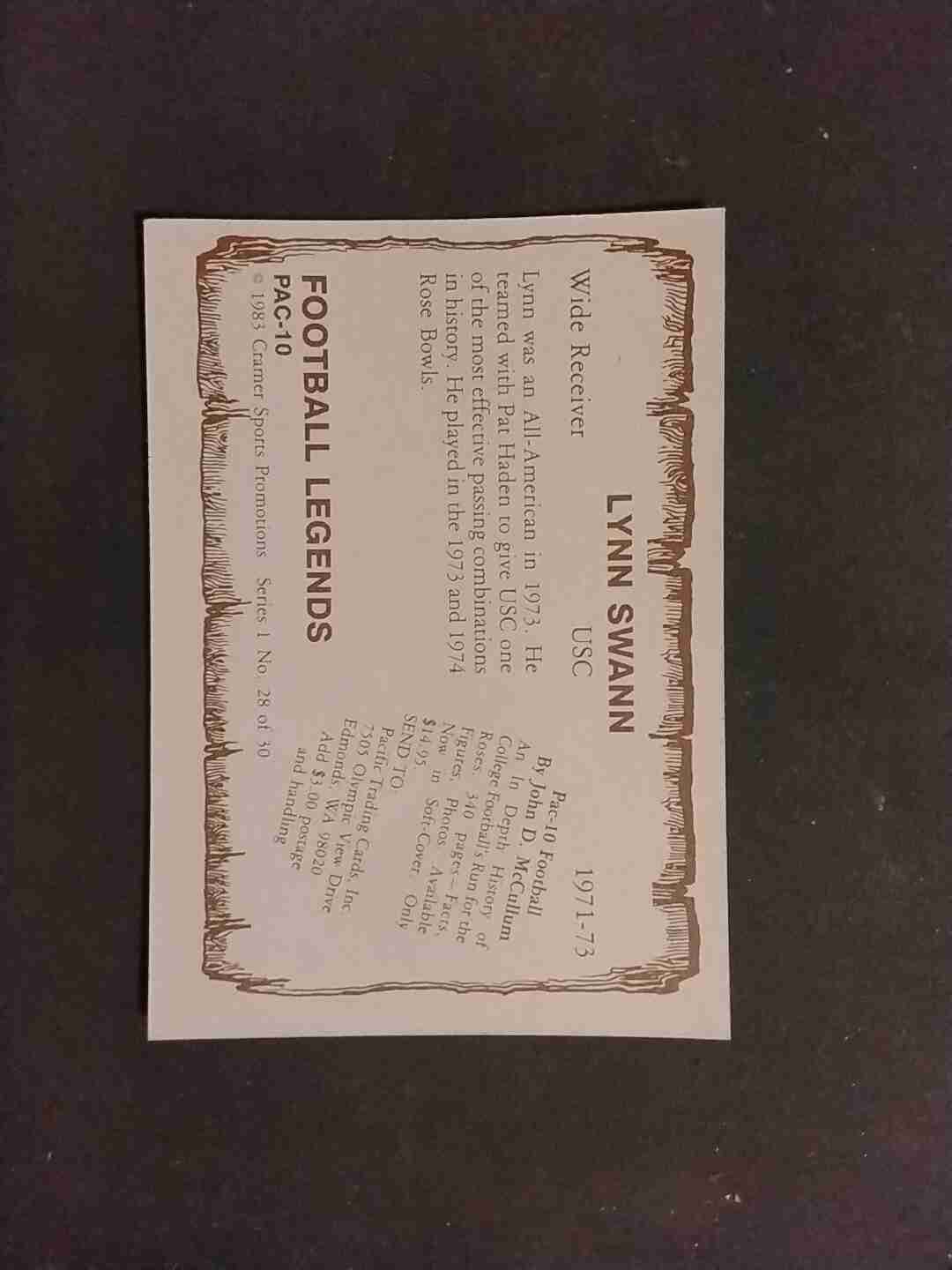 1983 Cramer Sports Promotions Series 1 No. 28 of 30 PAC-10 Football Legends
