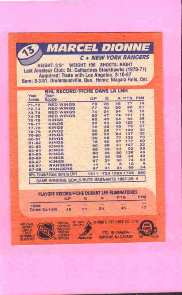 Marcel Dionne #13 1988 O-Pee-Chee