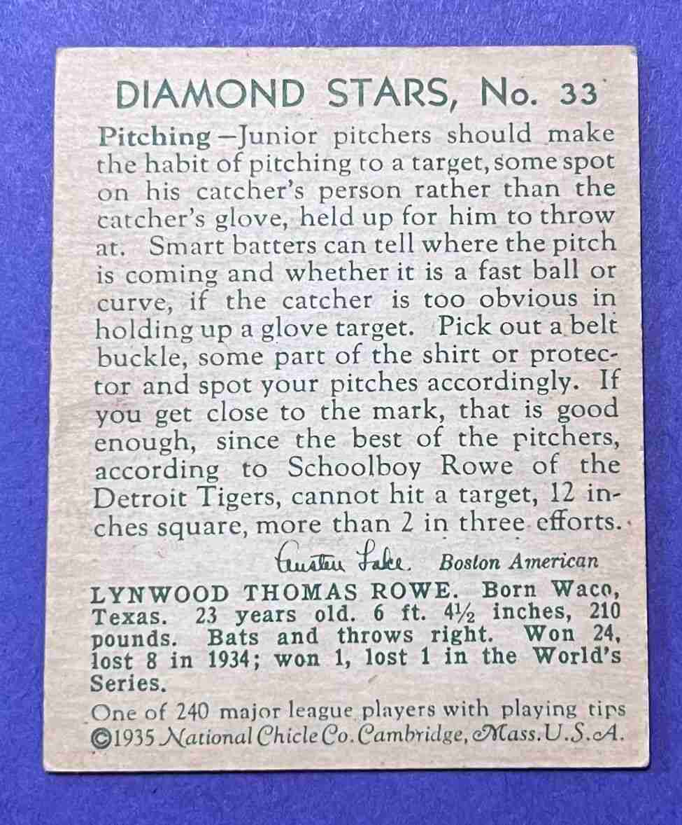1934-36 DiamondStars SCHOOLBOY ROWE #33 +++