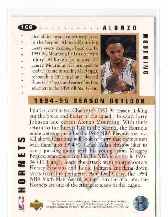 94-95 Collector's Choice Alonzo Mourning #168 Silver Signat