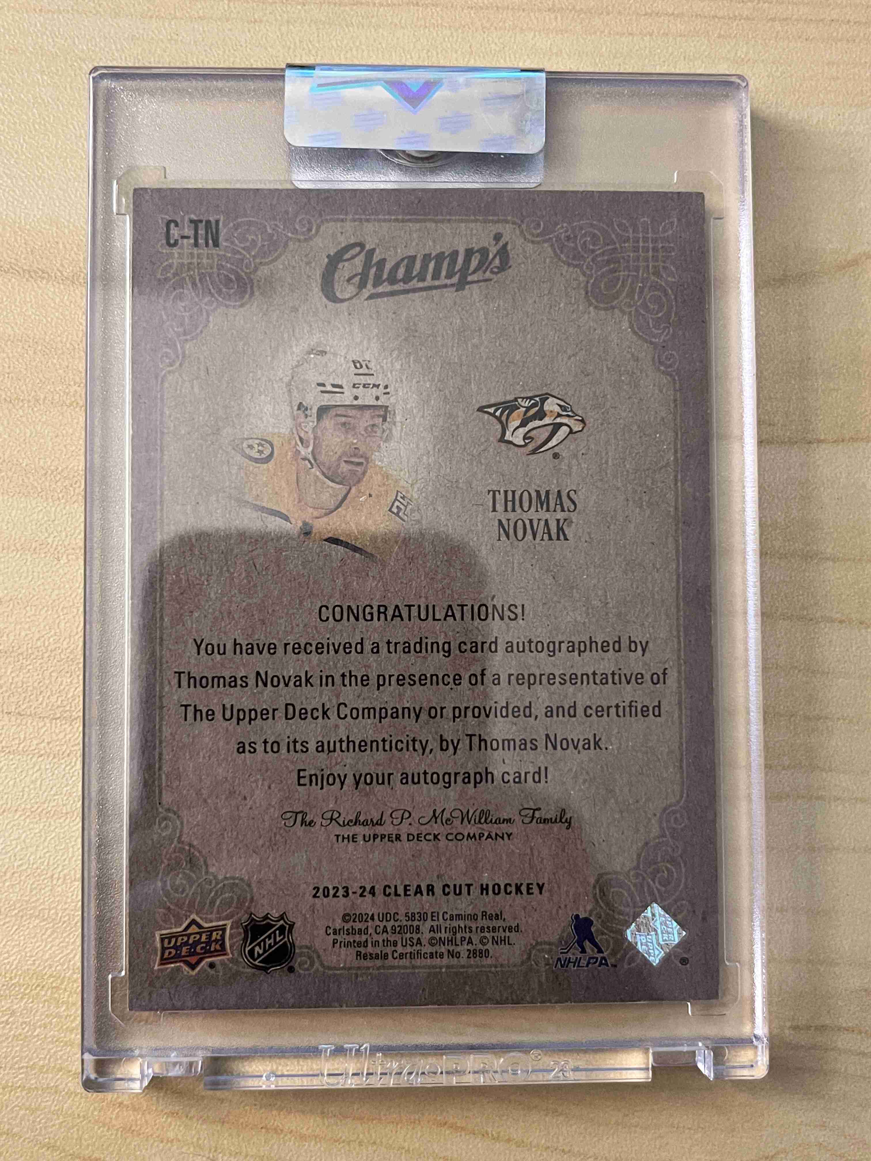Thomas Novak 2023-24 UD Clear Cut Champ's Autograph