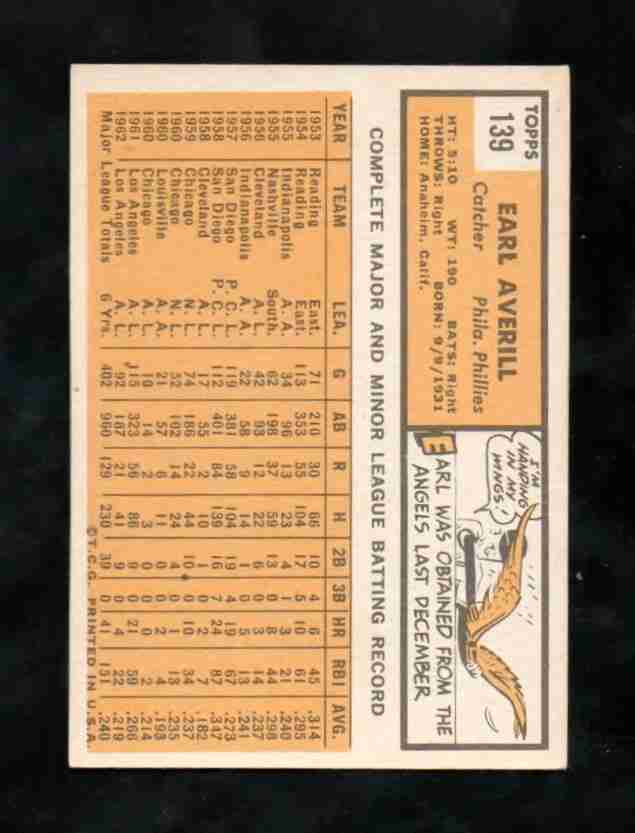 1963 Topps # 139 EARL AVERILL Phil. Phillies