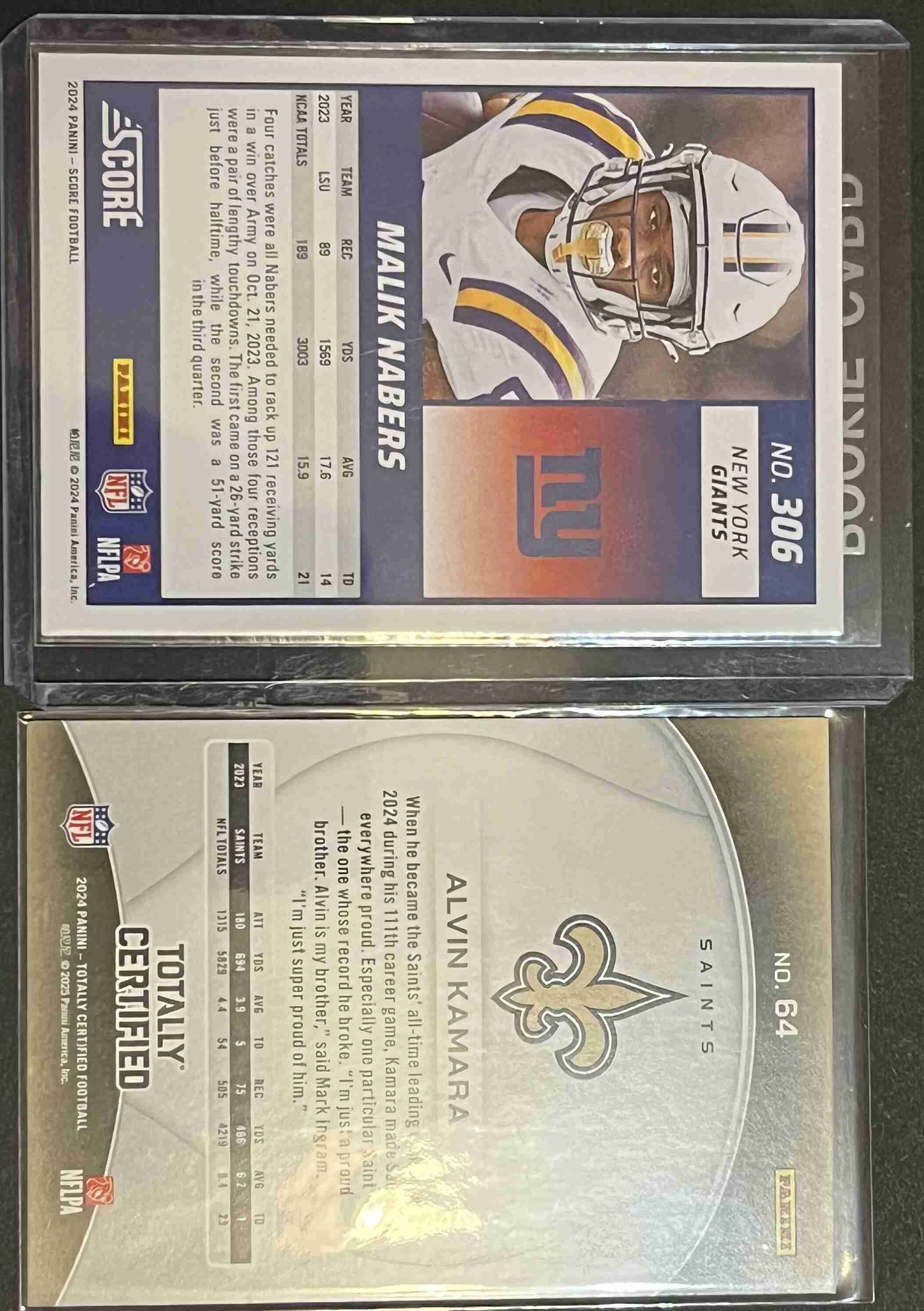 2024 Score 306 Malik Nabers Rookie Card 2024 Panini Totally Certified 64 Alvin Kamara 2020 Panini Contenders 90 Josh Allen 2008 Topps Chrome TC170 Joe Flacco Rookie Card