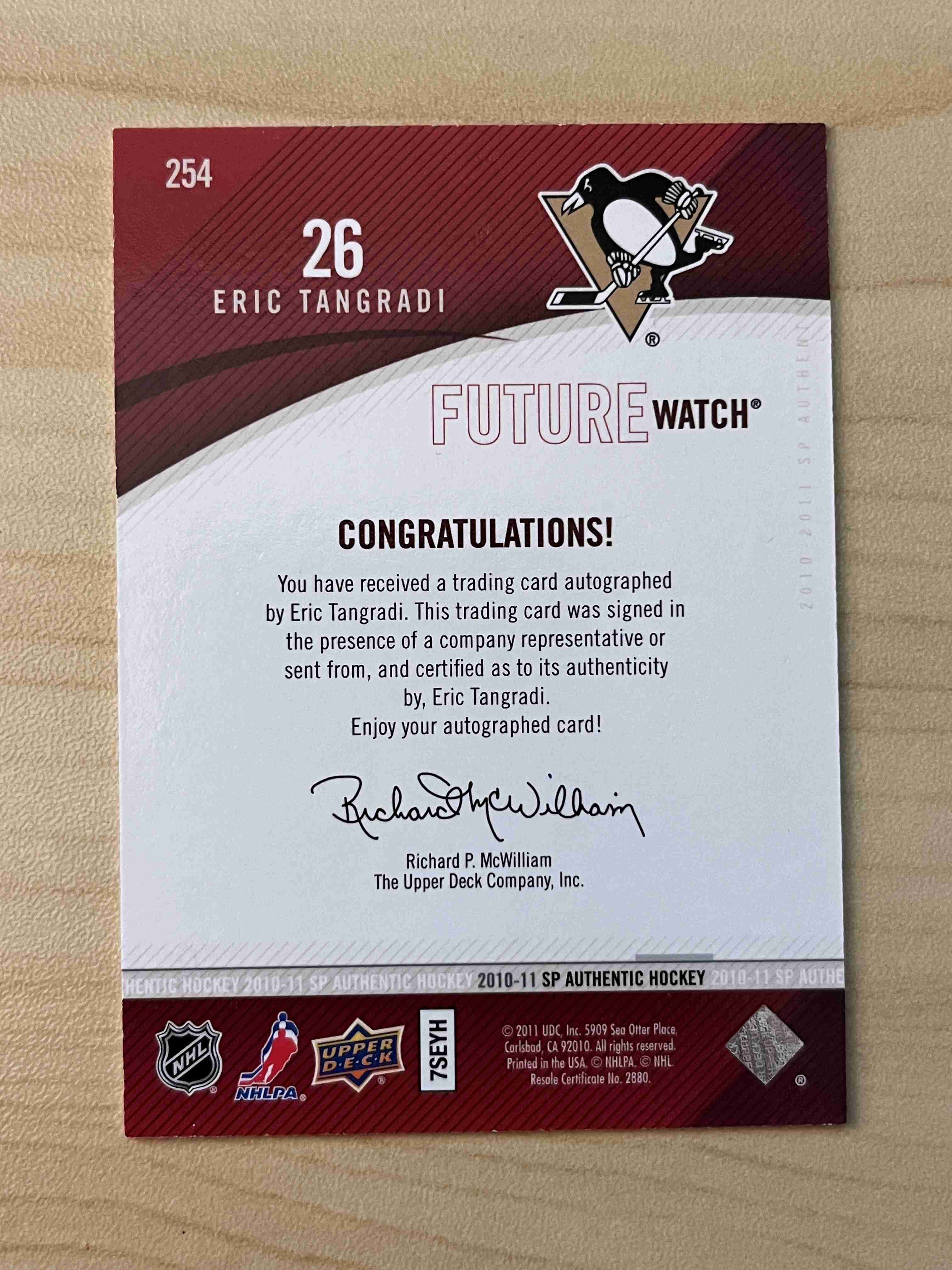 Eric Tangradi 2010-11 SP Authentic Future Watch AU (#/999)