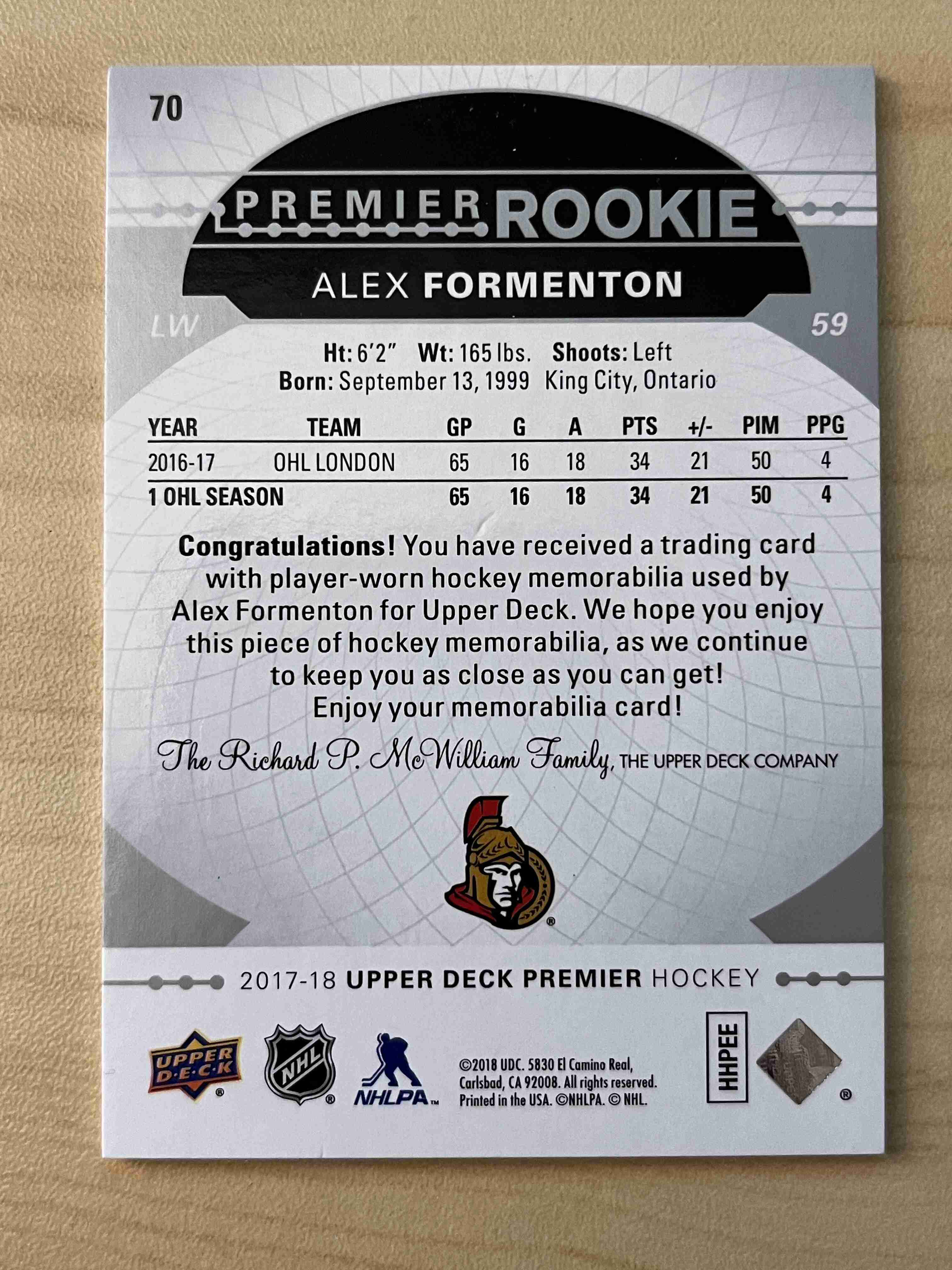 Alex Formenton 2017-18 UD Premier Rookie Jersey #70