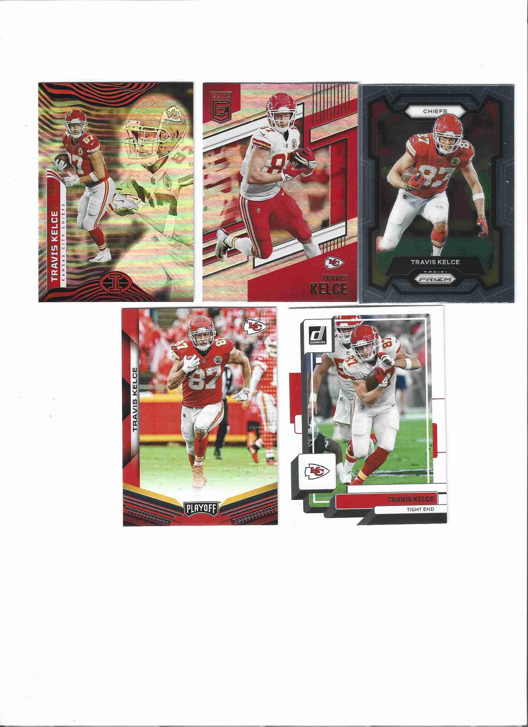 Travis Kelce (5) Card Lot-Elite/Prizm/Playoff/Illusions