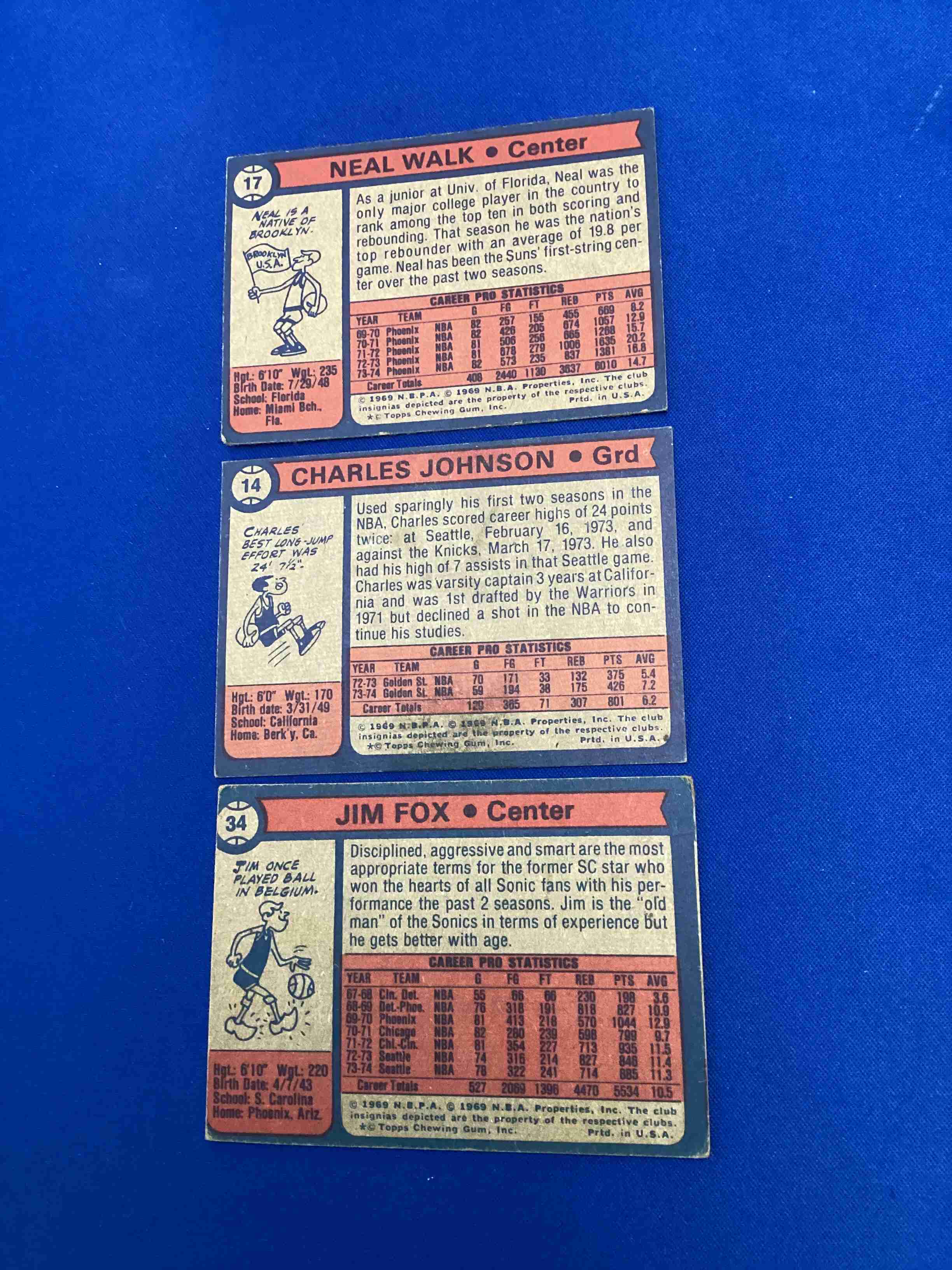 Lot of 3 - 1974-75 #14 Johnson #17 Walk #34 Fox