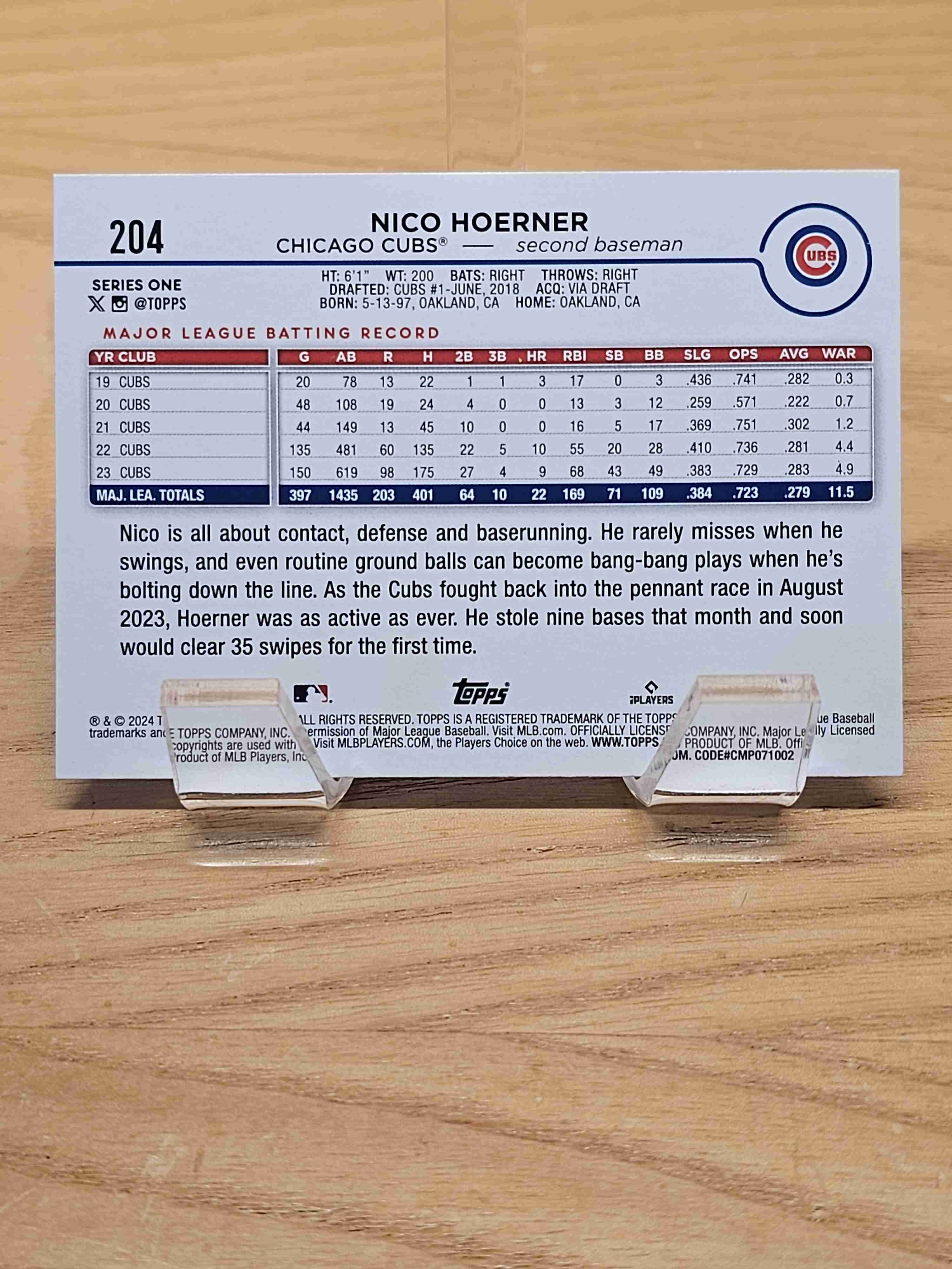 2024 Topps Series One Baseball Nico Hoerner Chicago Cubs Card #204